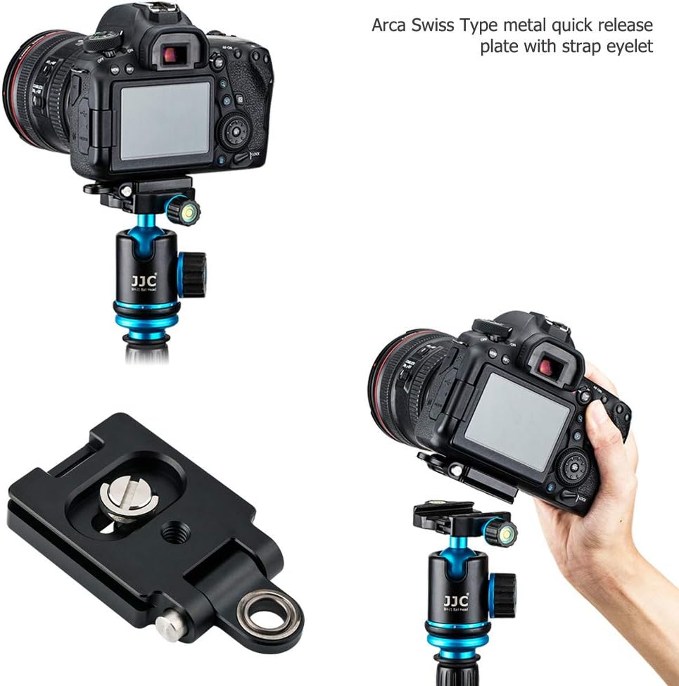 The Arca Swiss Type quick release plate can be mounted to a Arca Swiss Type tripod system. With the strap eyelet, this metal quick release plate can securely fasten your camera to the strap.