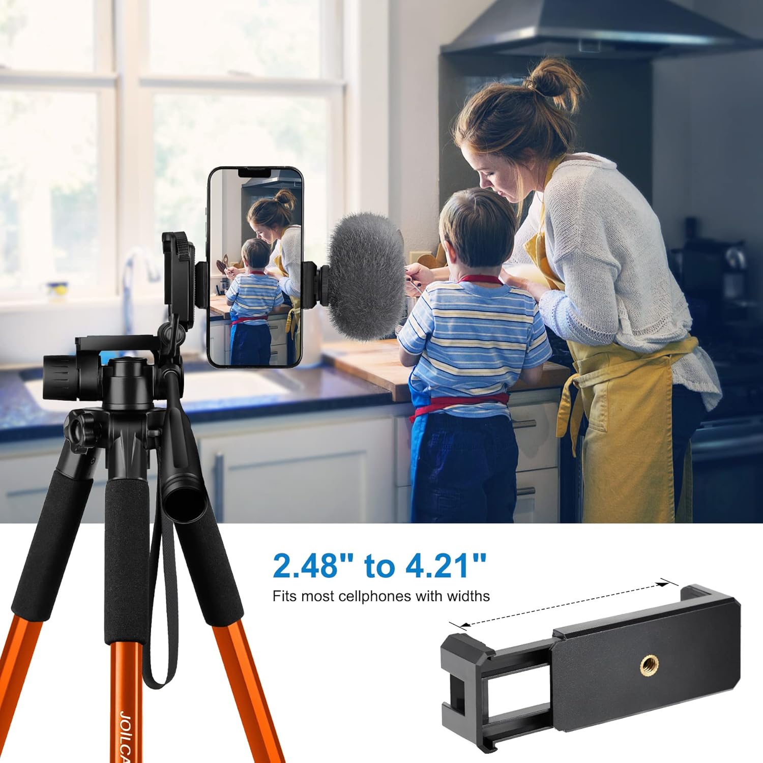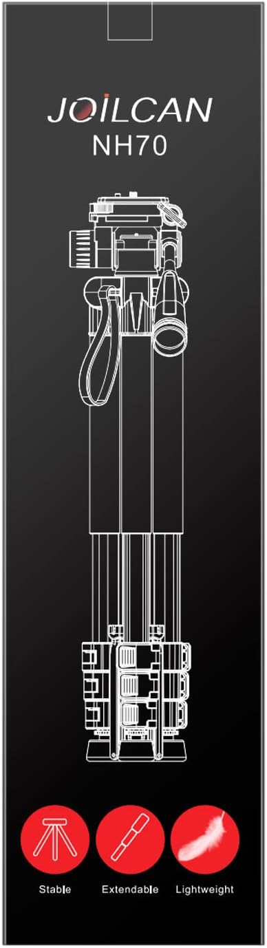『Flexible Tripod Height to 65in』The flip lock can adjust the height from 19″ to 65″ in few seconds, max load is 12 lbs/5.5 kg and weight is only 2.5 lb. The collapsed size is only 20 inch, easy to store in you bag or JOILCAN carry bag attached, it’s perfect for travel