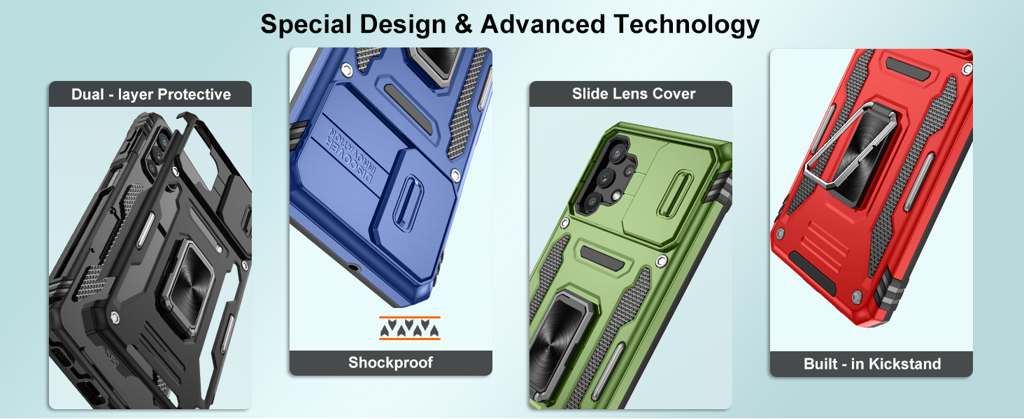 Unique Design:Samsung a32 5g case’s sliding camera cover protects camera from shattering, the raised design of camera aperture edges provide effective protection for the screen and camera.The design of back with unique texture provides great grip feeling, anti-scratch,anti-slip,shockproof,samsung galaxy a32 5g phone case gives your phone stronger protection