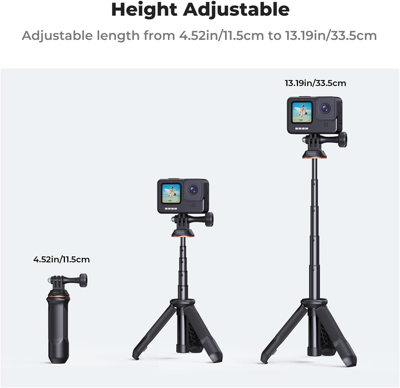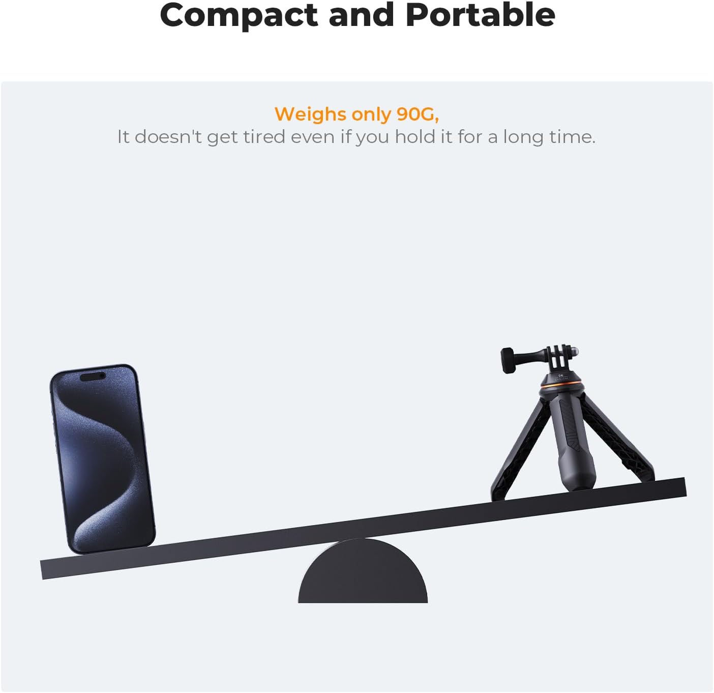 Multi-Device Compatibility: This tripod’s head supports up to 2kg of weight, making it perfect for GoPro, DJI Osmo Action, Insta 360, and other devices, ensuring you capture every moment effortlessly.
