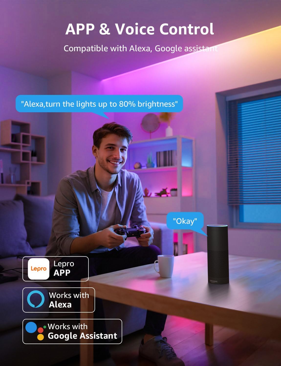 Upgraded Voice Control – Easy to Use: No manual setup or preset scrolling, just tell the Lepro app what you want: ignite holiday vibes, elevate parties, or mirror your favorite movie and game themes and get perfect lighting in seconds.
