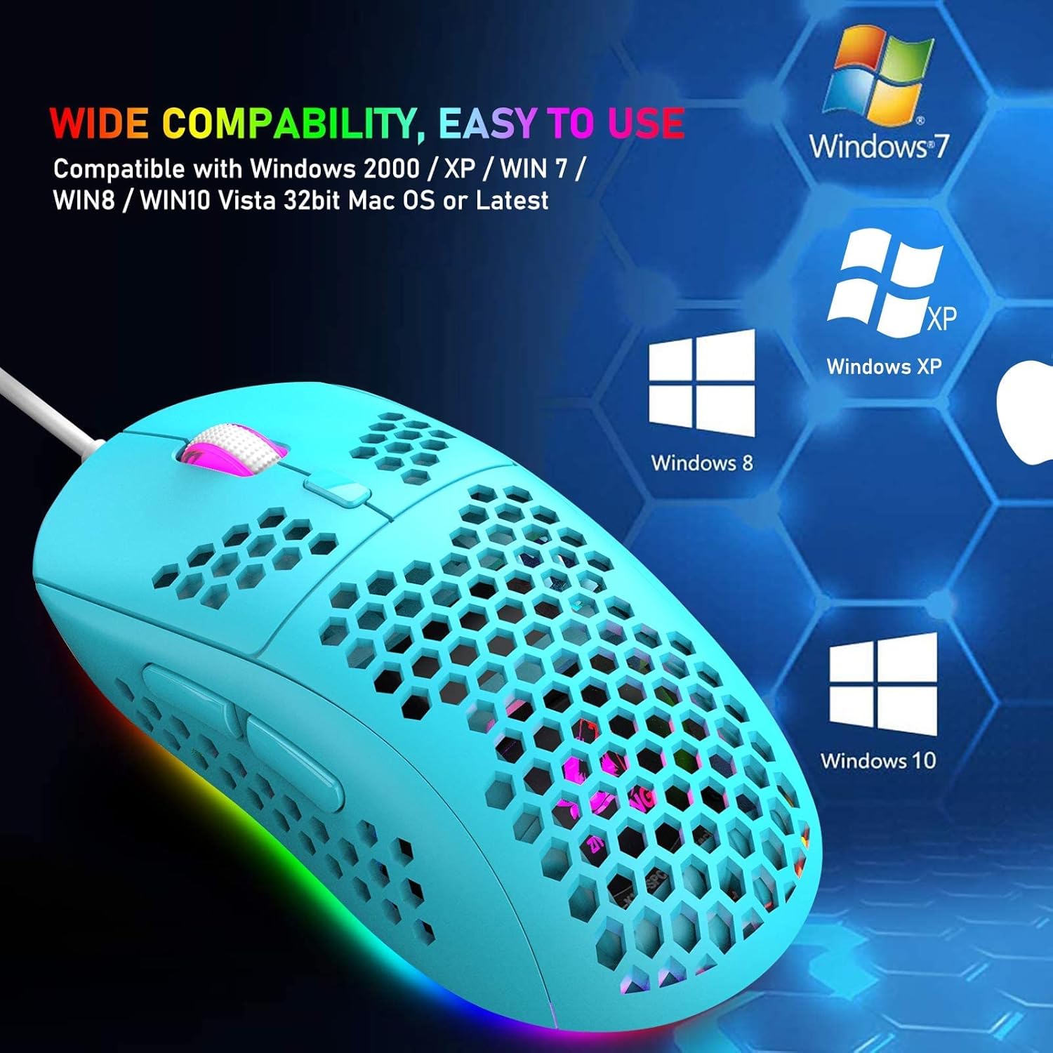 【65G Ultralight Ergonomic Gaming Mice】This lightweight PC gaming mice is designed with O-shaped perforated shape, reduces weight, saves more energy, improves heat dissipation, extend the service life,ergonomic housing can fit your palm perfectly whichever way you hold it, make using more comfortable especially when gaming.