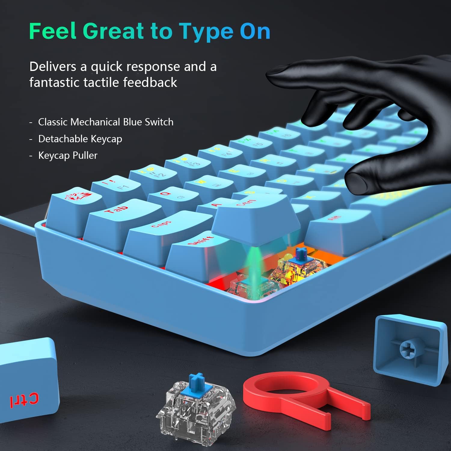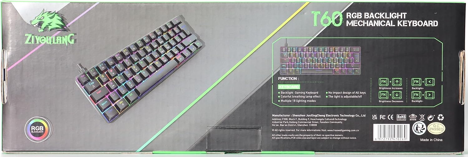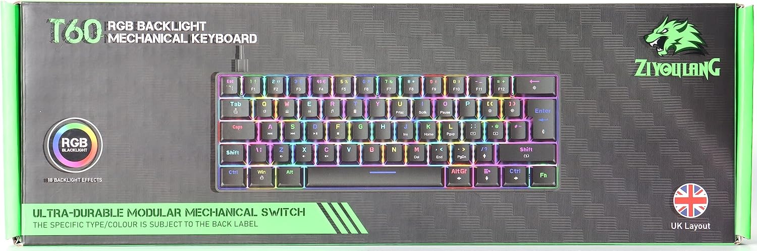 【Classic 60% Compact Mechanical Keyboard】This 60% gaming keyboard has a perfect size and it’s good for Home and Office use, UV coated keycaps and injection laser carving ABS keycaps design, the letter of characters never fade.High quality durable ABS material, portable film keys and switches. No need to drive, plug and play directly, sensitive response.Support all keys without conflict.