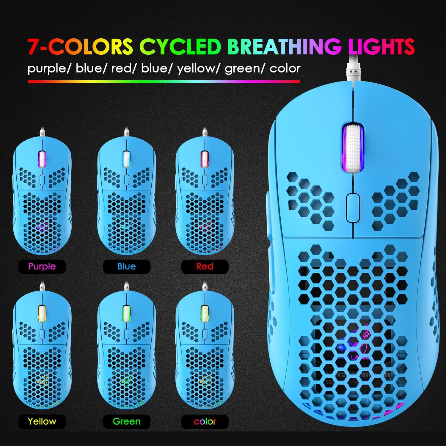 3. Light effects: 6 Kind RGB backlit effect (Mouse backlight color Can be adjusted)