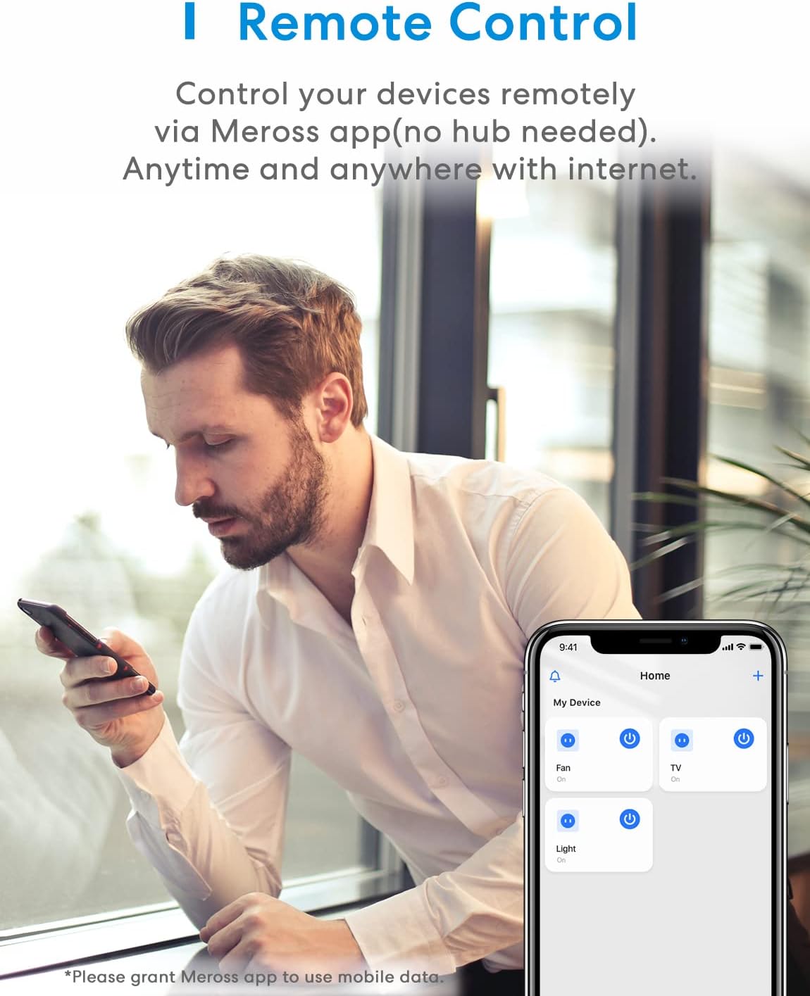 With the Meross app, you can control your devices anytime, anywhere with an internet connection.
