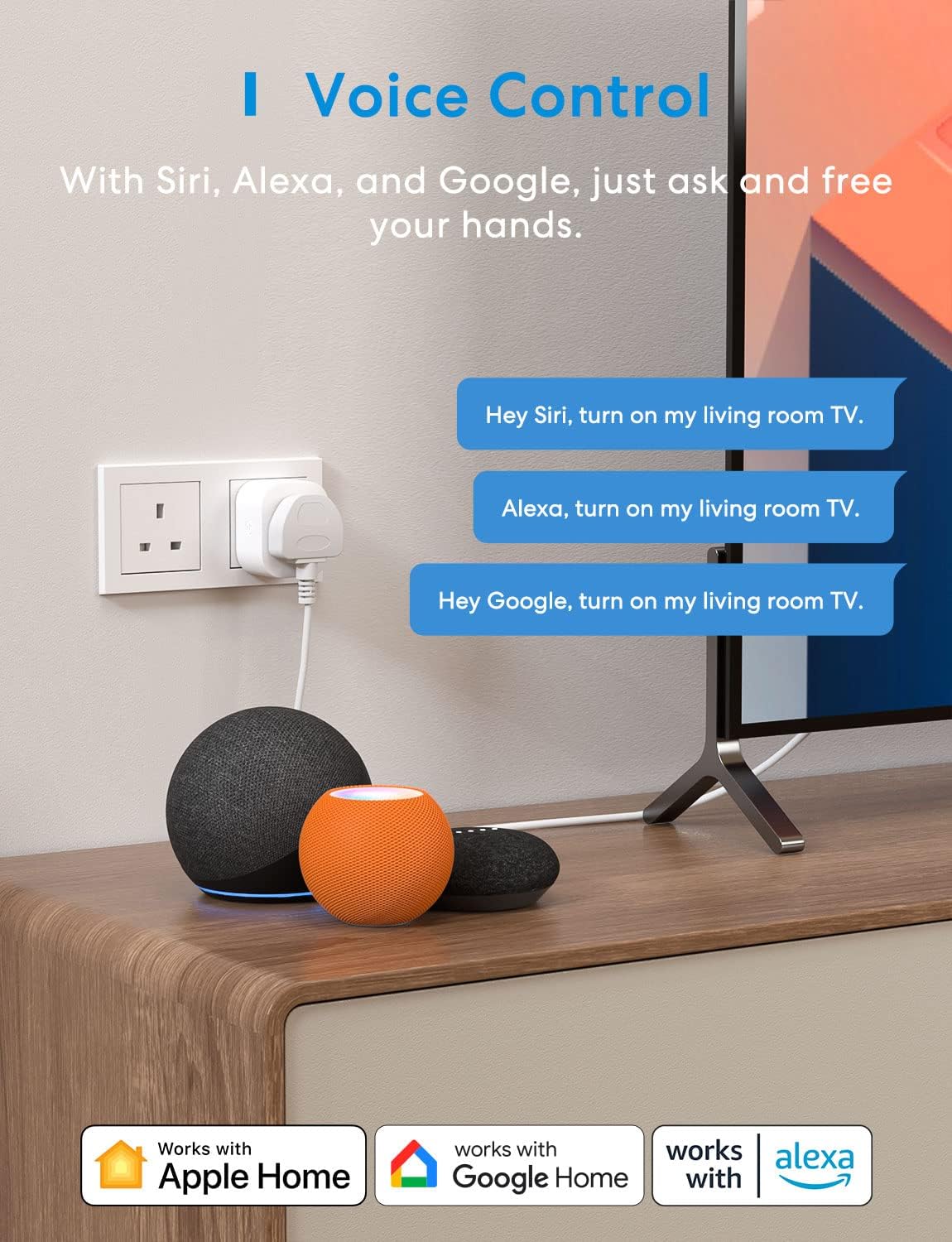 The voice function of this smart plug works with Apple HomeKit, Alexa and Google Home.