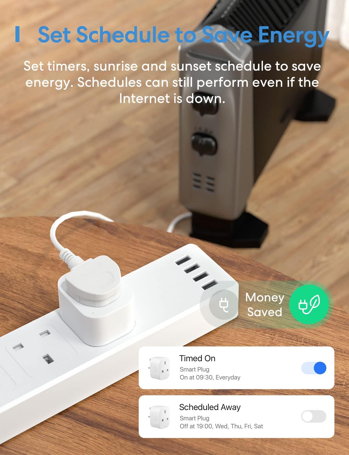 The plug works automatically according to schedules and help you save electricity.