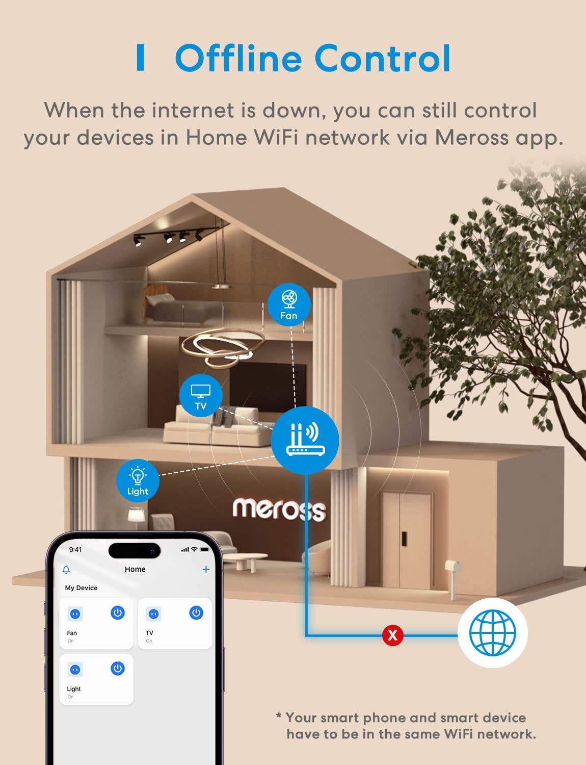 In the event of a network failure, the smart plug can continue to be controlled via the Meross App.