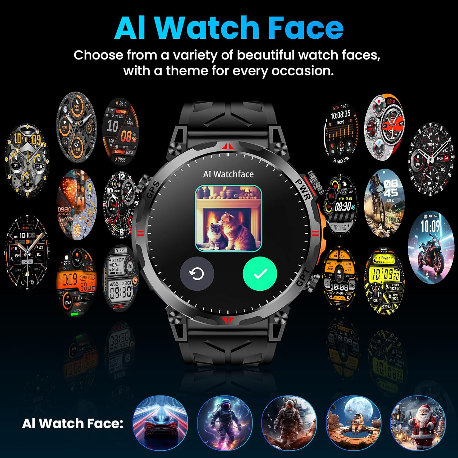 ⌚【GPT Voice Assistant&AI Watch Face】Simply tap the GPT interface on this smartwatch and speak your command—any question is answered instantly. For example, ask “How do I build muscle?” and the watch will log your query and deliver the answer on the spot. Unlike traditional timepieces, it pairs with the DaFit app to unlock AI-powered, creative watch faces. Turn photos of your family, pets, memories, or favorite landscapes into one-of-a-kind faces right away.