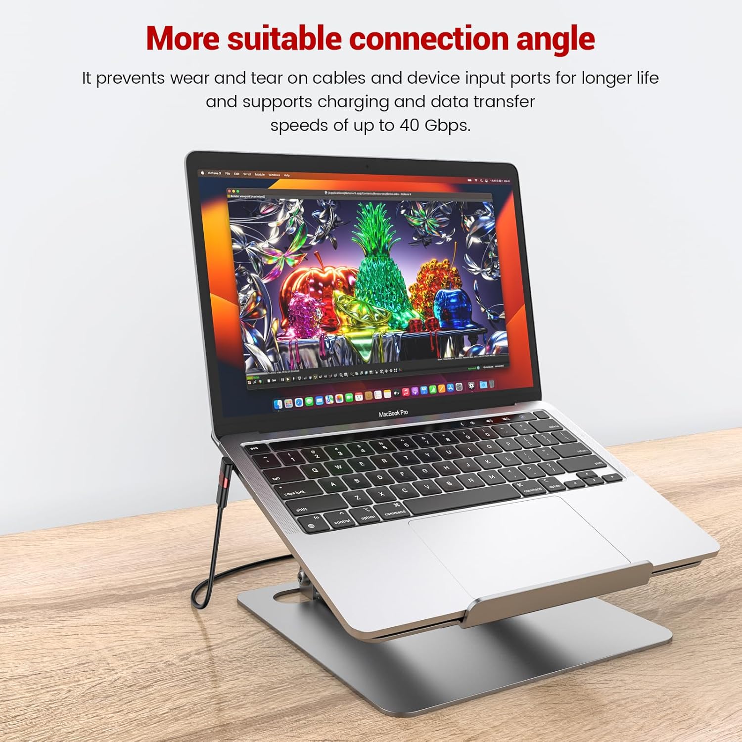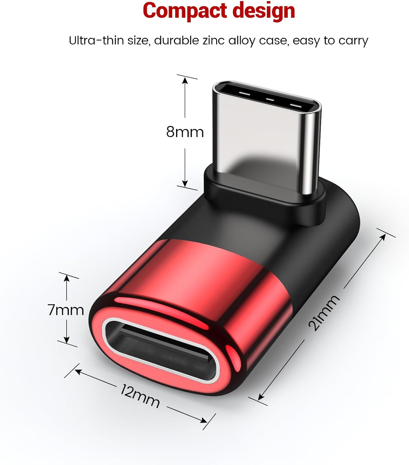 【40Gbps Data Transfer】The USB C adapter meets the USB 4 standard, that is up to 40Gbps data transmission speed. Transfers movies, music and more in just seconds. Please noticed that the data transmission speed ​also depends on the USB devices and the cable support or not. 90 Degree USB-C Male to USB-C Female Adapter