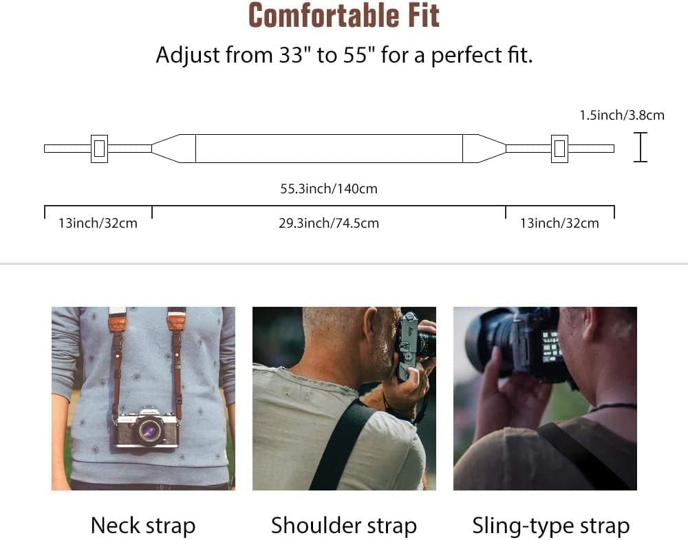 Customers find the camera strap to be of excellent quality and good-looking. They describe it as comfortable and functional. The durability receives mixed feedback, with one customer reporting that it snapped and damaged their camera.
