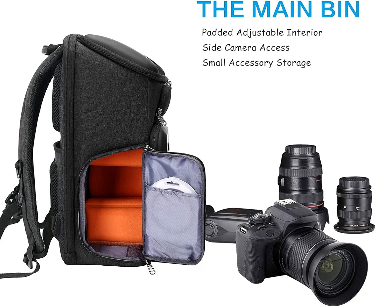 Multifunctional pockets are featured for your SD cards, cell phone, wallet, card, key and other necessary needs for outdoor photography. Lightweight and durable. This photography bag is made of durable polyester fabric with zippers and reinforcement edge & bottom, perfectly used for outdoor travel, wedding, photography, vlog. Waterproof rain cover is included. Back trolley belt makes it convenient during the trip.