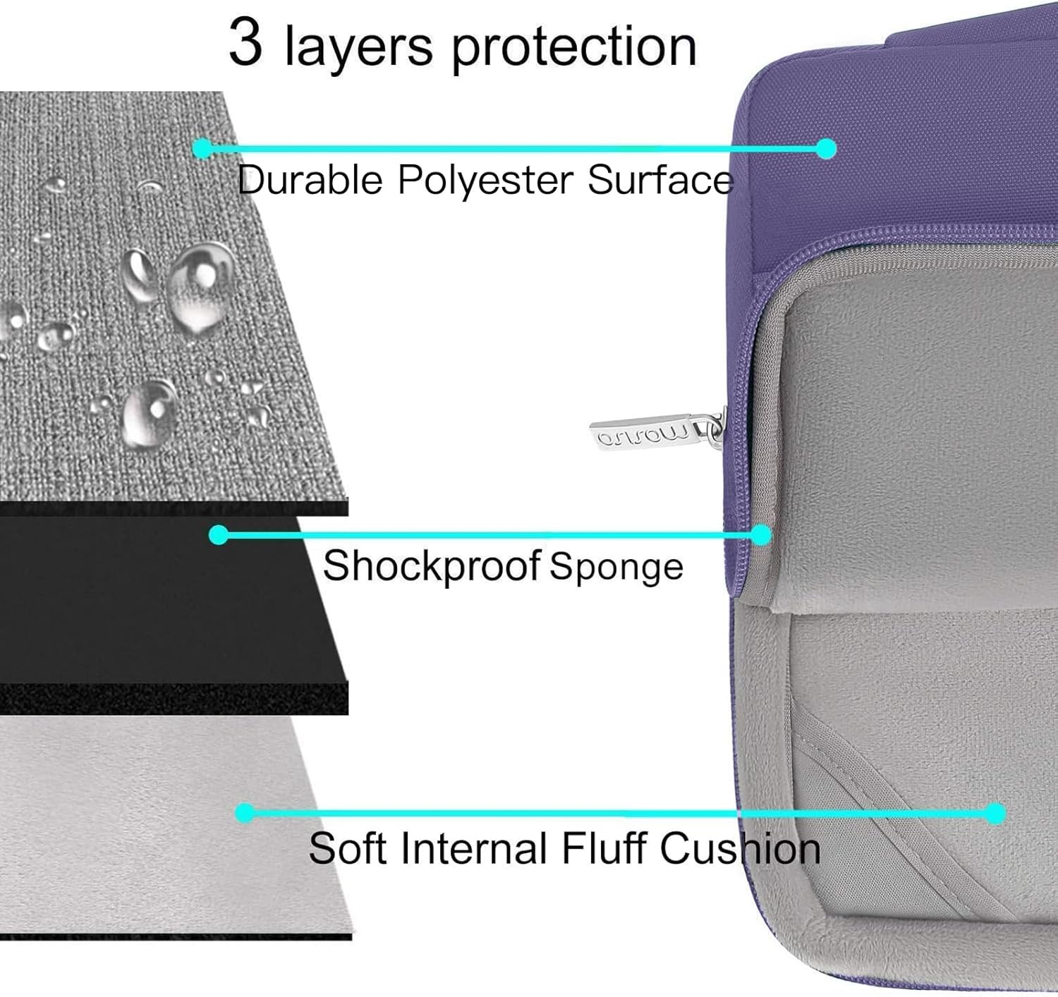 The 360 degree protective shockproof laptop sleeve with handle carrying bag internal size: 13.39 x 9.25 x 0.79 inches/34x 23.5x 2cm (LxWxH); external size: 13.98 x 9.84 x 0.79 inches/35.5 x25 x2cm (LxWxH). The front side pocket size: 11.61×9.25 inches /29.5×23.5cm (LxW). Made of polyester material, protect your laptop against accidental spills. Slim and lightweight, does not bulk your device up and can easily slide into your briefcase, backpack or other bag. Ideal for business, daily and travel.