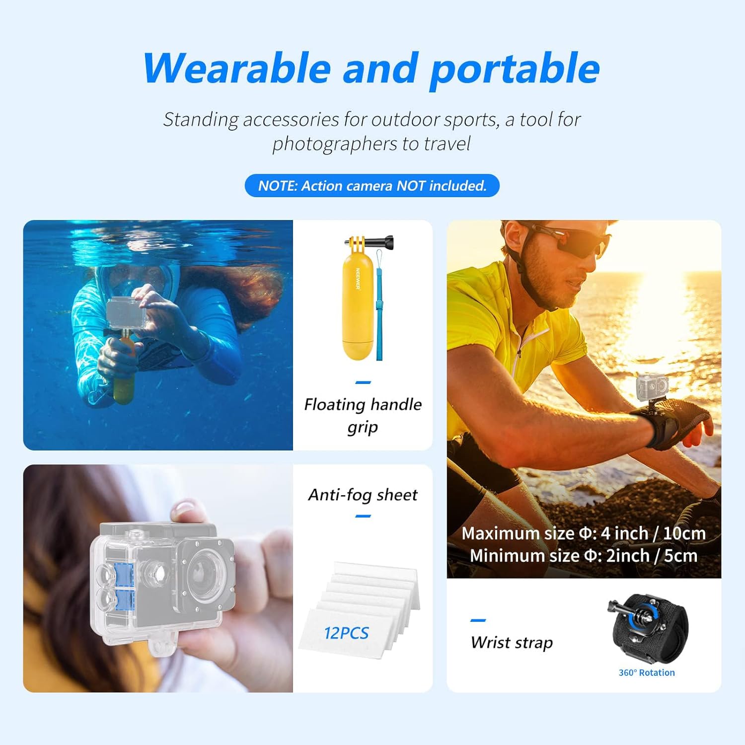 【Wrist Strap & Floating Handle Grip】 The wrist strap with a 360° rotatable mount is easily adaptable to fit your wrist and arm for taking shots from different angles. The floating handle grip compatible with gopro insta360 keeps your camera afloat in the water when swimming or snorkeling, lightweight accessory for your thrilling float trips
