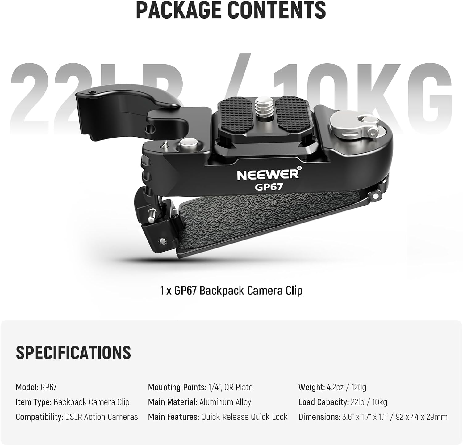 Neewer Backpack Camera Clip Mount with Square QR Plate, Upgr…