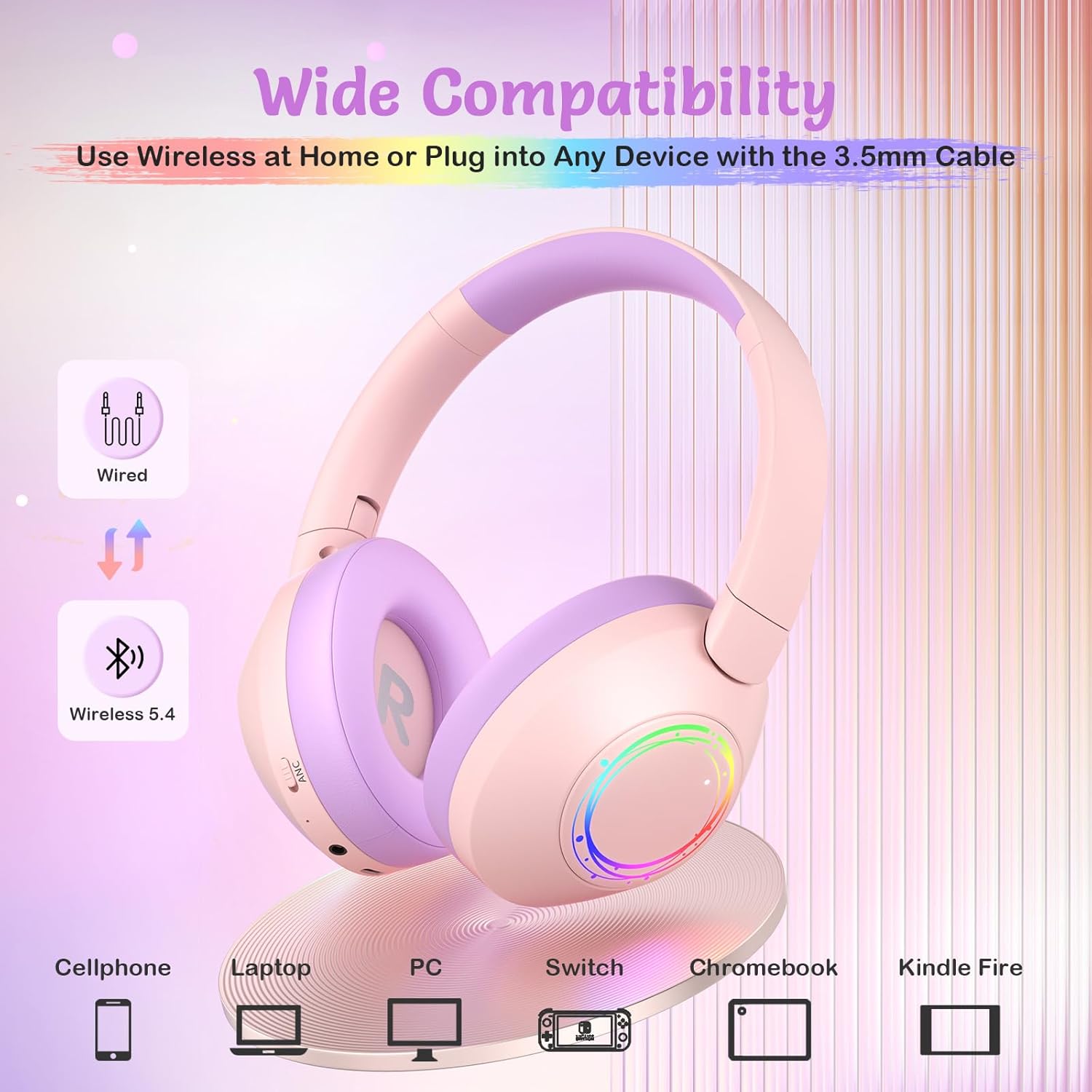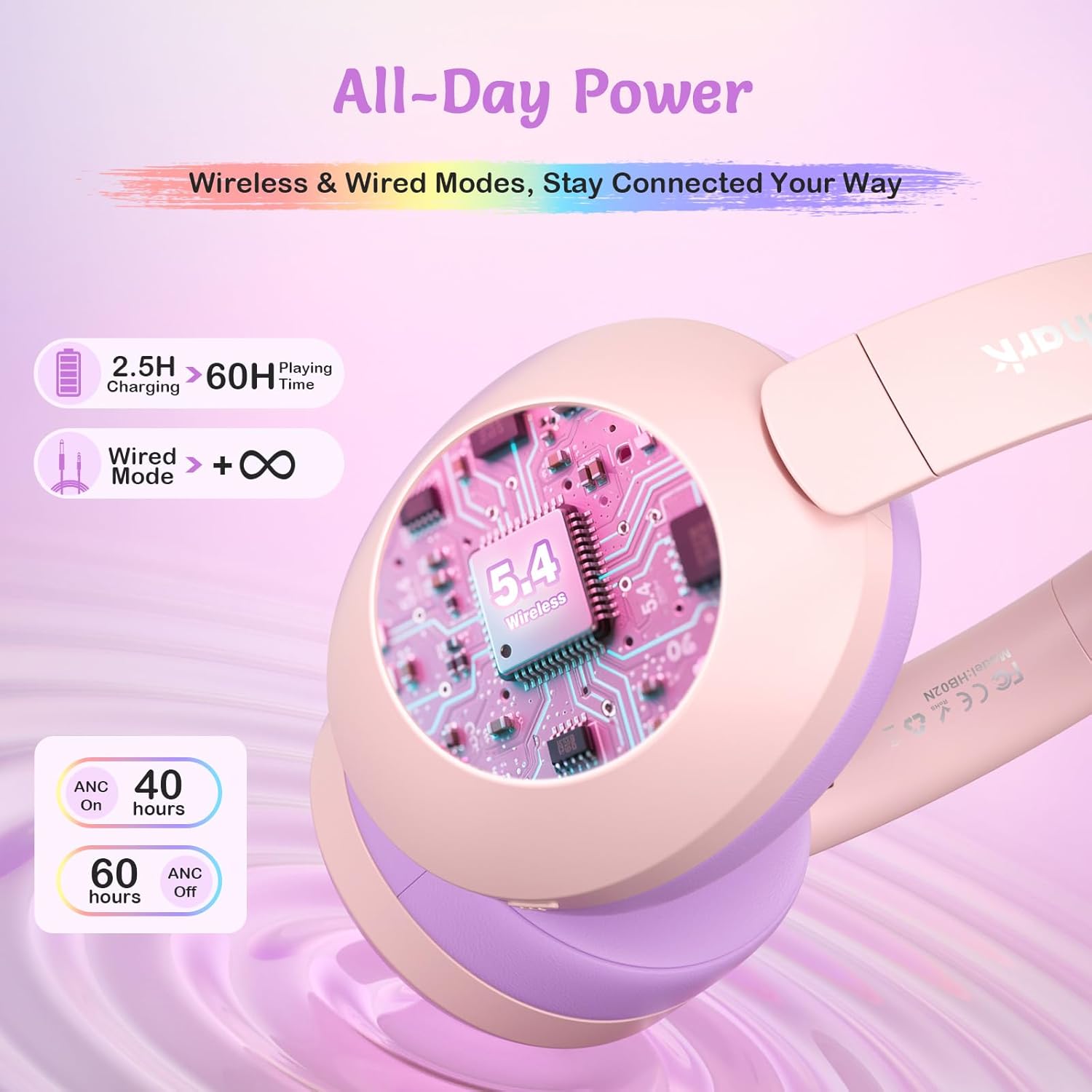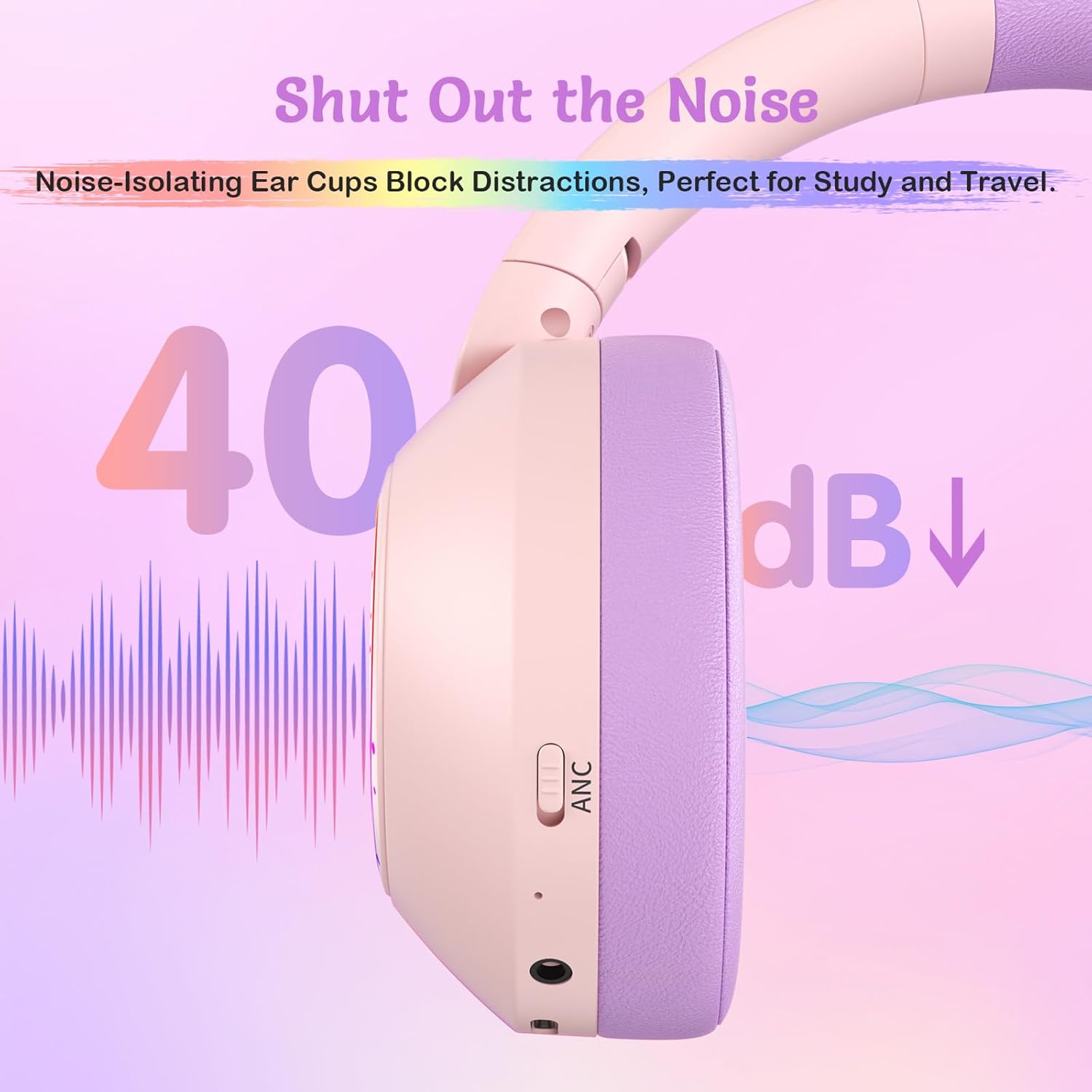 60H Battery + Wired Backup:Enjoy up to 60 hours of wireless playtime (ANC off) or 40 hours with ANC on. When the battery runs low, your child can switch to wired mode via the 3.5mm jack—ideal for everyday use at school, long trips, or weekends away. Great Bluetooth headphones for children who need reliable audio without daily charging.