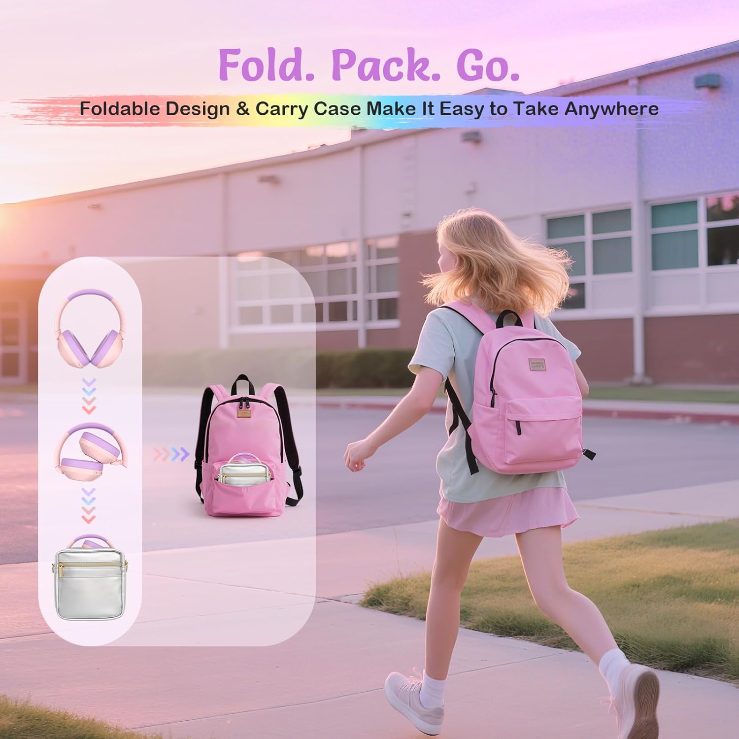 Foldable Design + Cute Carrying Case:These foldable kids headphones pack easily into the included adorable carrying case, perfect for travel bags, school lockers, or backpacks. Keeps everything organized, protected, and easy to carry—no tangled cords, no bulky gear. A thoughtful bonus parents love.