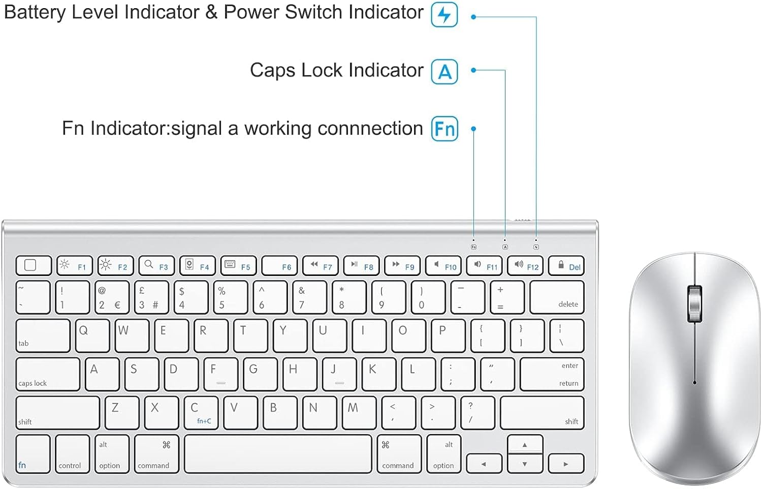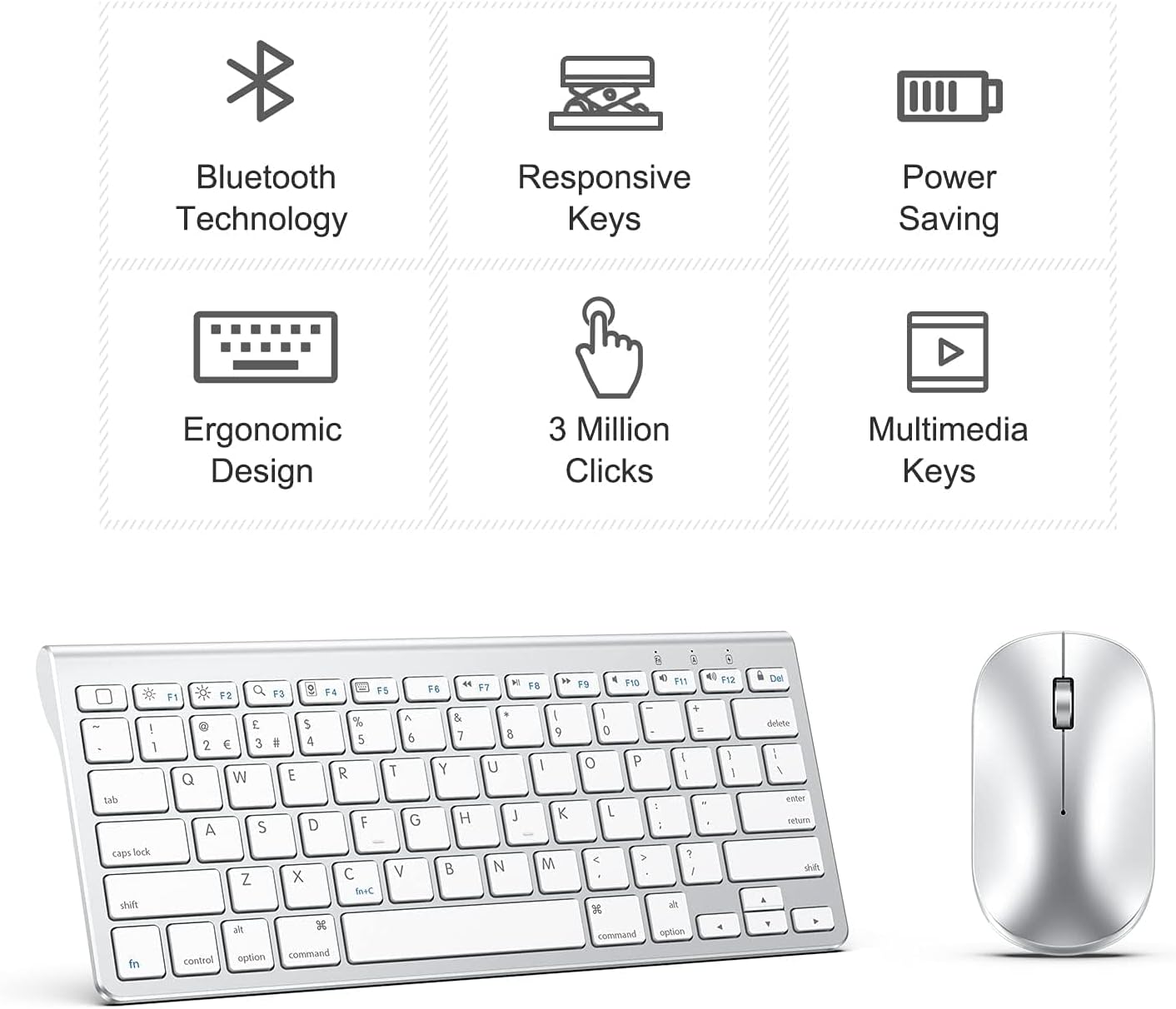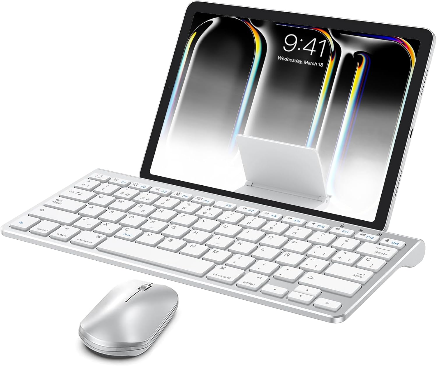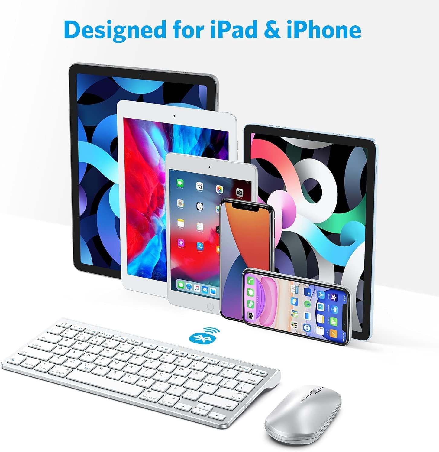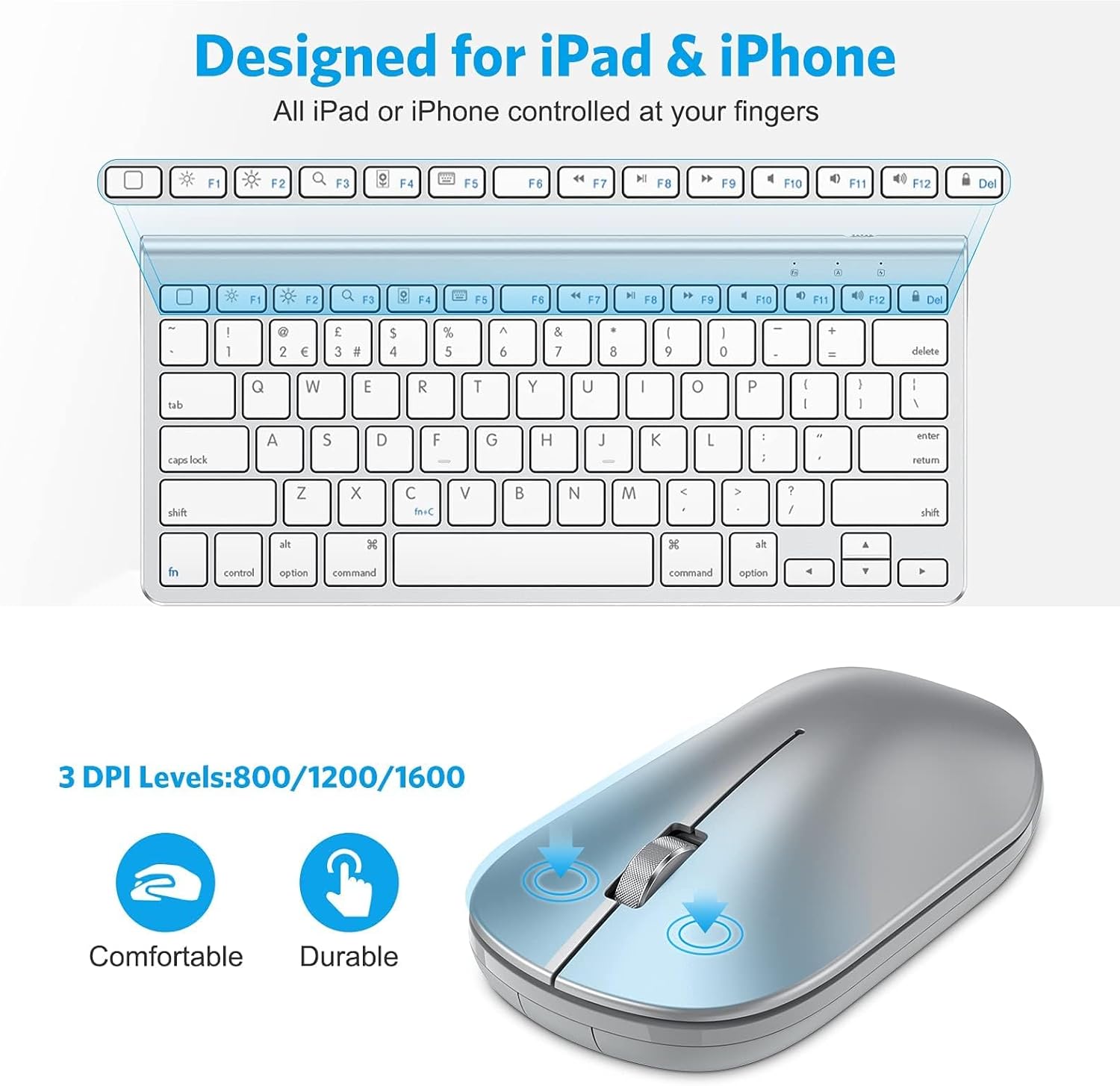 【Perfect Size and Ergonomic Design】:The keyboard and mouse set for ipad is compact to save space on your desk so that the mouse has more available space. This combo is easy to carry, it fits easily in your bag. It is also ergonomically designed with a slight angle so you can type and use more comfortably