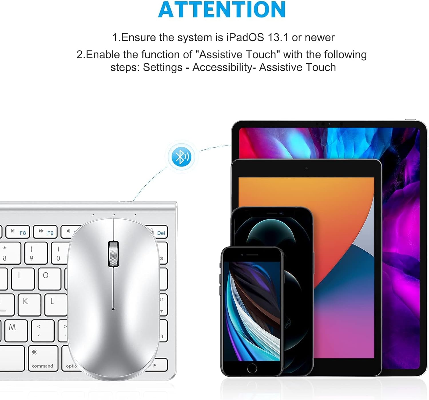 【Universal Compatibility】: The wireless keyboard mouse is designed specifically for iOS / iPad OS, including iPad 10, iPad 9, iPad Air 6 2024, iPad Pro 13/12.9/11 inch, iPad mini 6, iPhone 15/15 Pro / 15 Pro Max / iPhone 14 series, iPhone Xs Max / XS / X / XR etc. (You need to upgrade your system to iPad OS 13 and iOS 13 or higher)