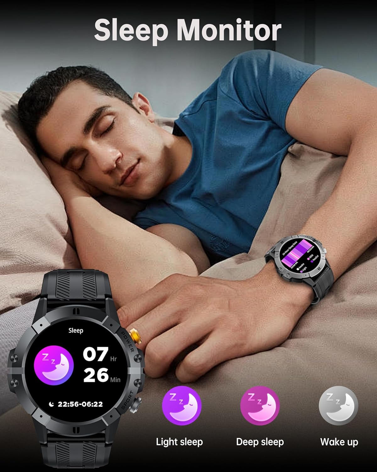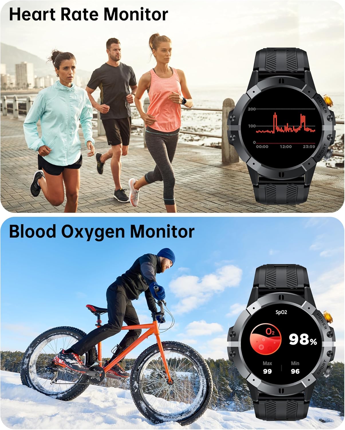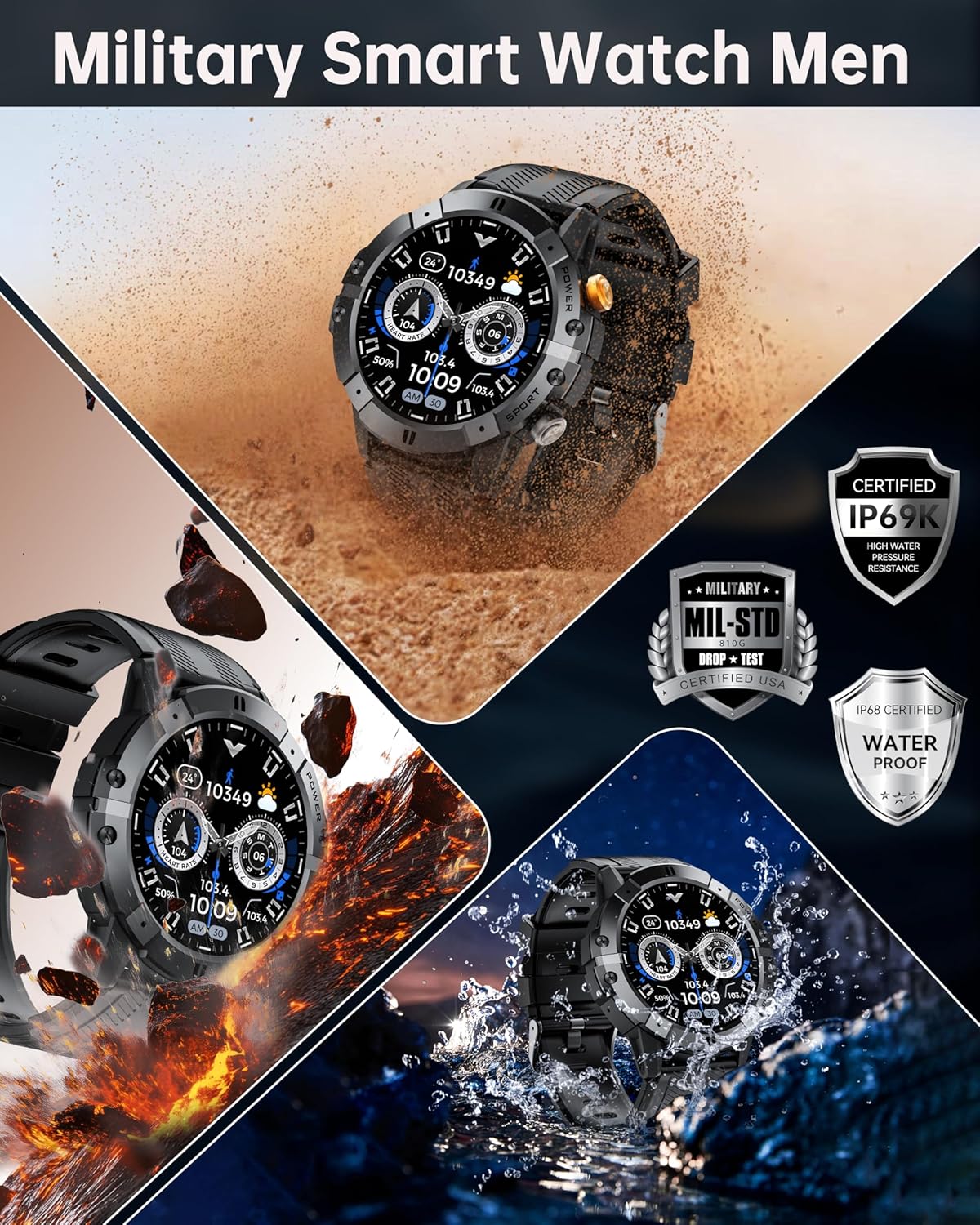 Men’s Rugged Smartwatch: military smart watches for men,which features a 1.52-inch TFT display with three stylish customizable watch faces: default face + photo/custom face. Choose your favorite photo as the watch screen. Includes an adjustable silicone/nylon strap with a skin-friendly design suitable for sensitive skin. The perfect smartwatch for men.