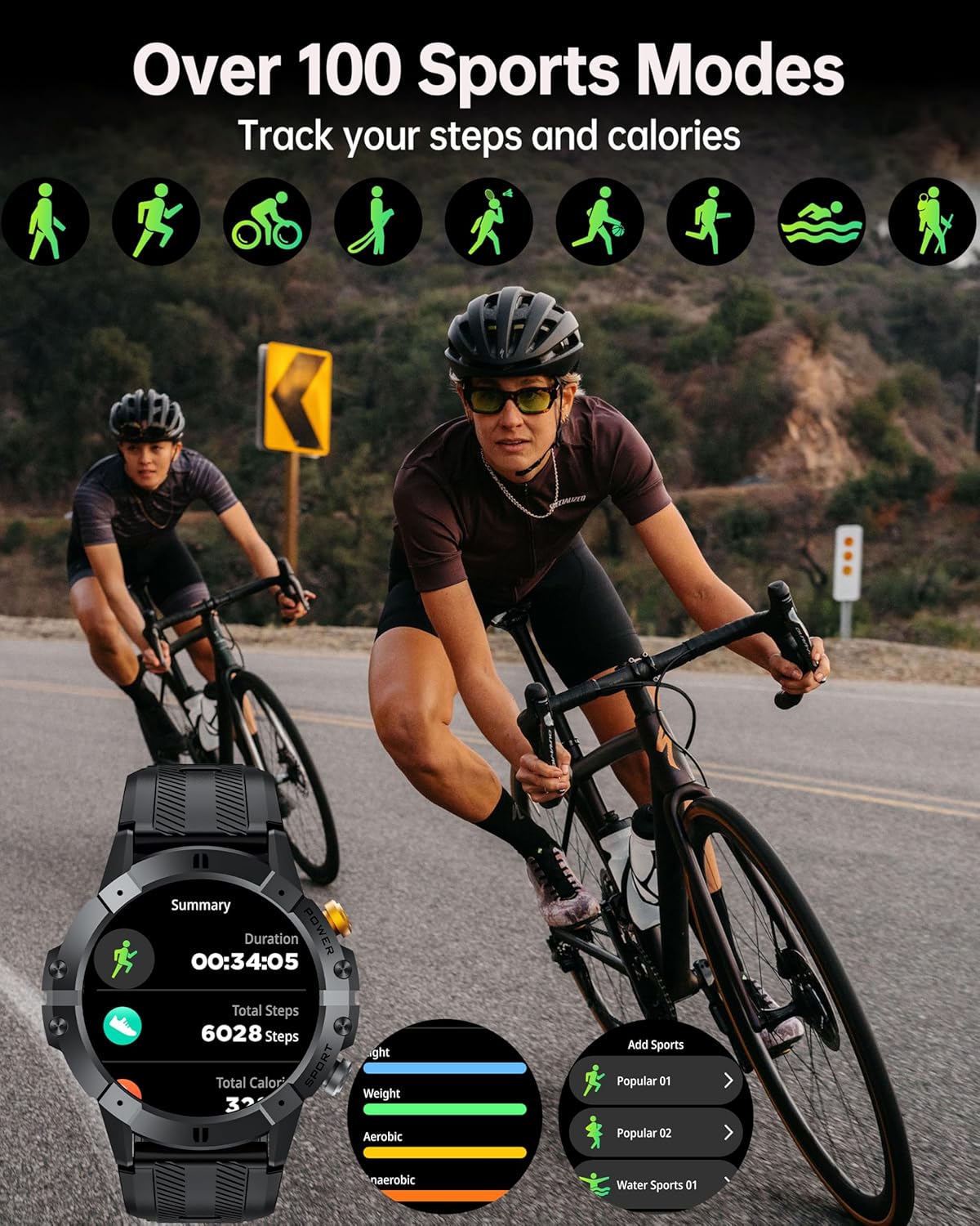 100+ Sports Modes and IP68 Waterproof: This fitness watch for men is equipped with 100+ sports modes, suitable for running, cycling, ball games sports, etc. It not only records steps, calories and exercise distance, but also analyzes data in real time to help optimize training results and achieve exercise goals easily. IP68 waterproof smart watch no need to take off the watch when you wash your hands or rainy days, which is convenient for your daily use.(*Note: This product is not suitable for sauna, hot water, showering, diving, swimming)