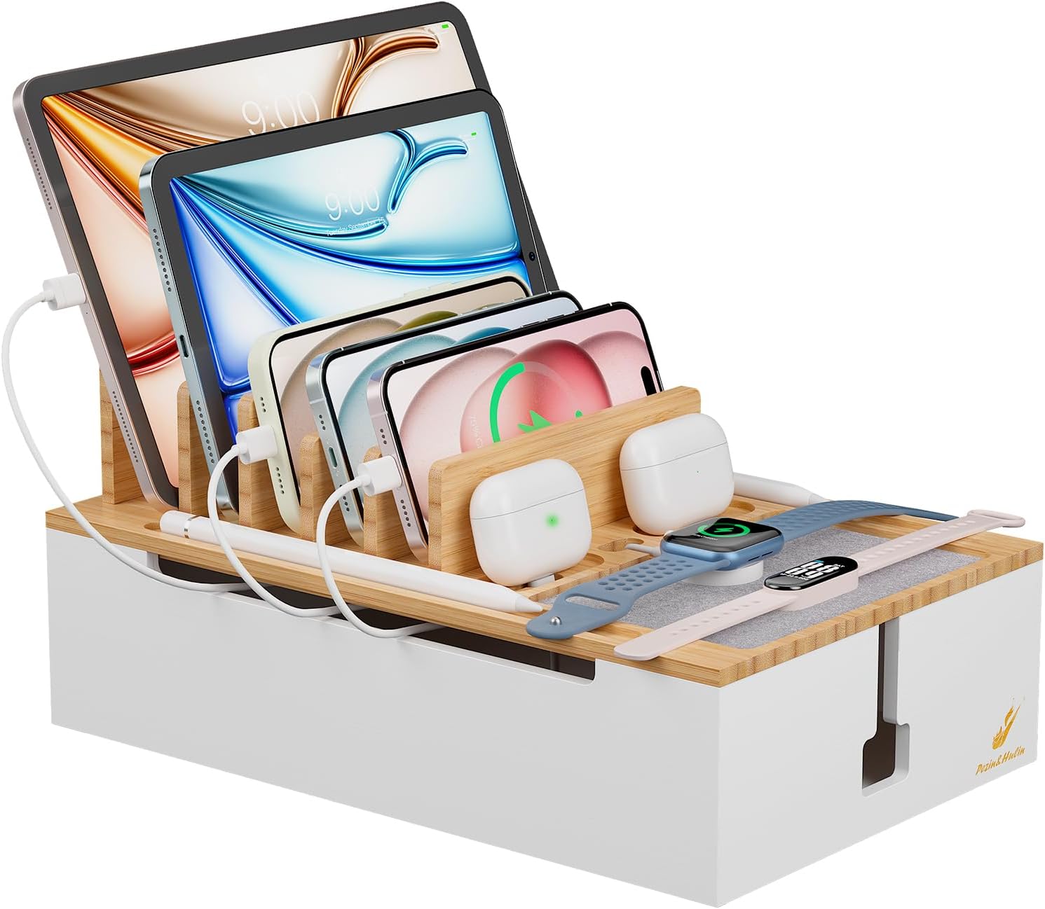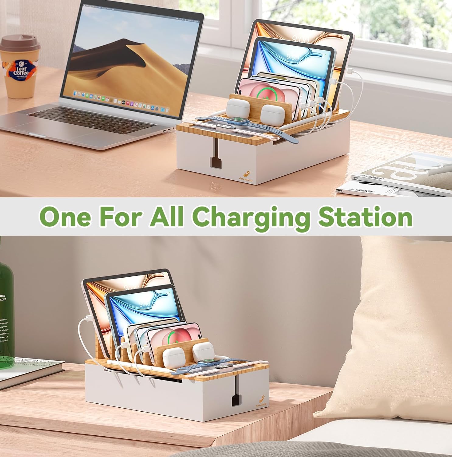Charging Station for Multiple Devices: Pezin & Hulin charging station is made of solid bamboo that will last for years to come.It can hold up to 10 devices, keep all your devices in one place without having to deal with cables running around everywhere. It is ideal for company, office, living room, bedroom, kitchen, hotel, restaurants and classroom (PLEASE NOTE: The charger HUB power supply is not included in the package)