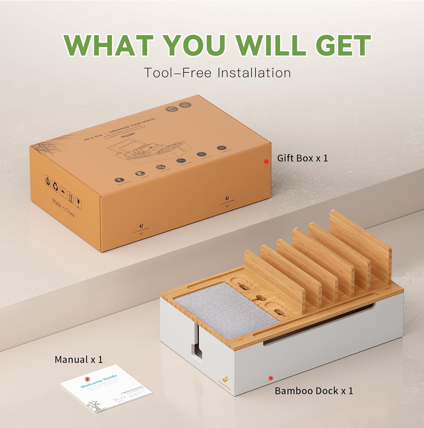 What You Can Get: 1 x Pezin & Hulin Bamboo Charging Station, 1 x user manual (PLEASE NOTE: The charger HUB power supply and Short USB Cables is not included in the package)