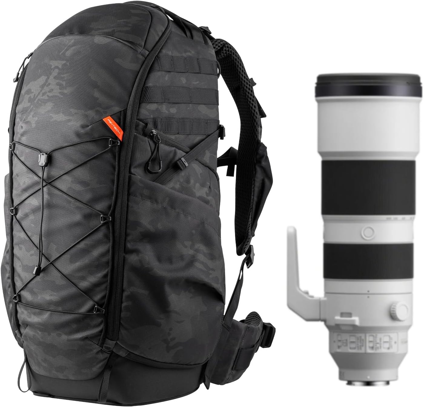 Organized Storage: Dual side zippered pockets for photography and digital accessories; Dedicated battery pocket with power level indicators; Shoulder Strap Loops – Easily attach your camera or binoculars for quick access; Molle system for attaching lens pouches and accessory packs; Multipurpose Side Pockets, Can hold tripods or water bottles; Includes accessory straps and an elastic front mesh for securing tripods and other gear