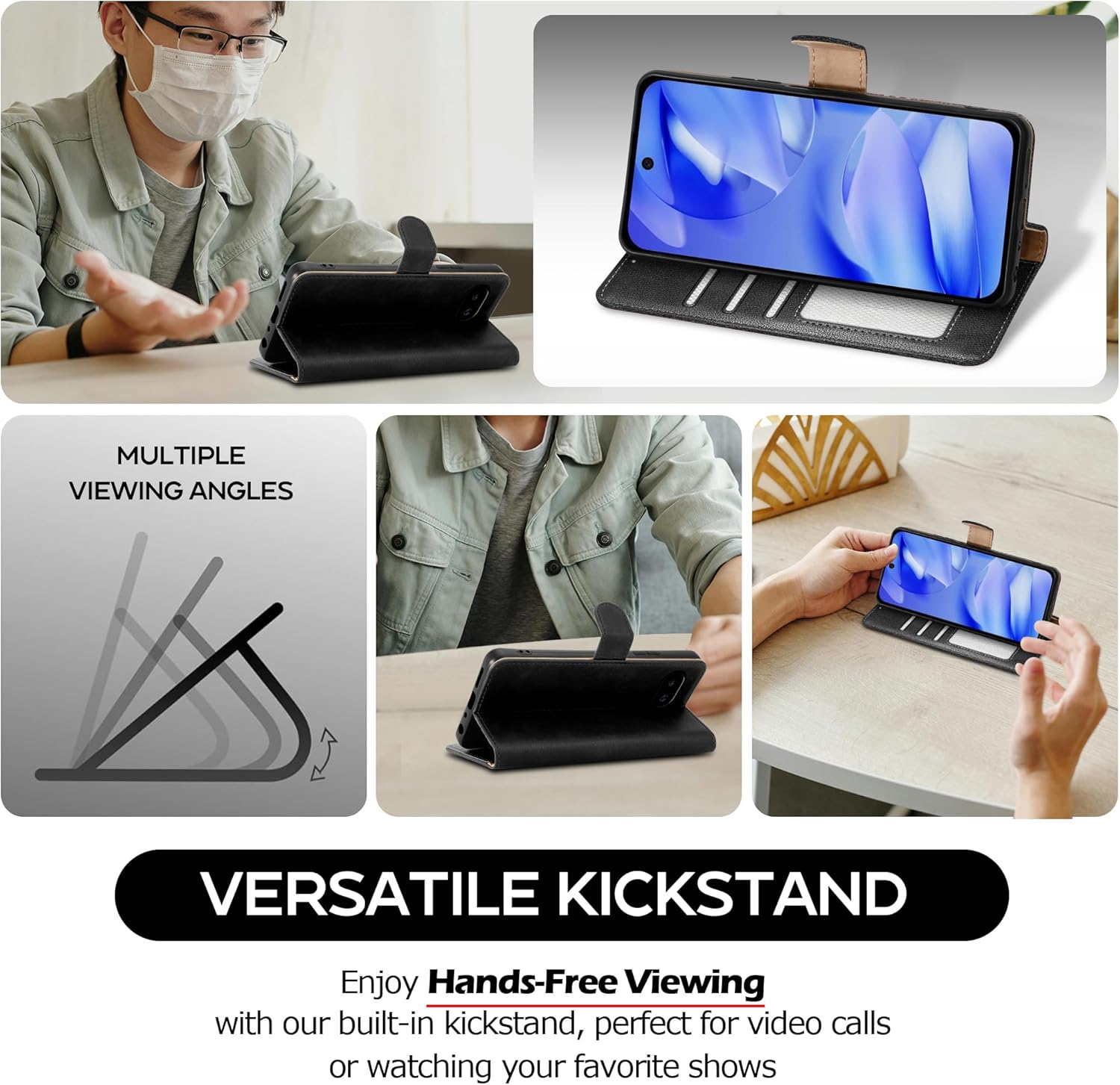 [Advanced RFID Blocking Technology] Security meets style. Our wallet case is equipped with cutting-edge RFID-blocking technology, safeguarding your cards from electronic theft and ensuring your personal information remains secure. The magnetic clasp keeps valuables safe, preventing them from falling out.
