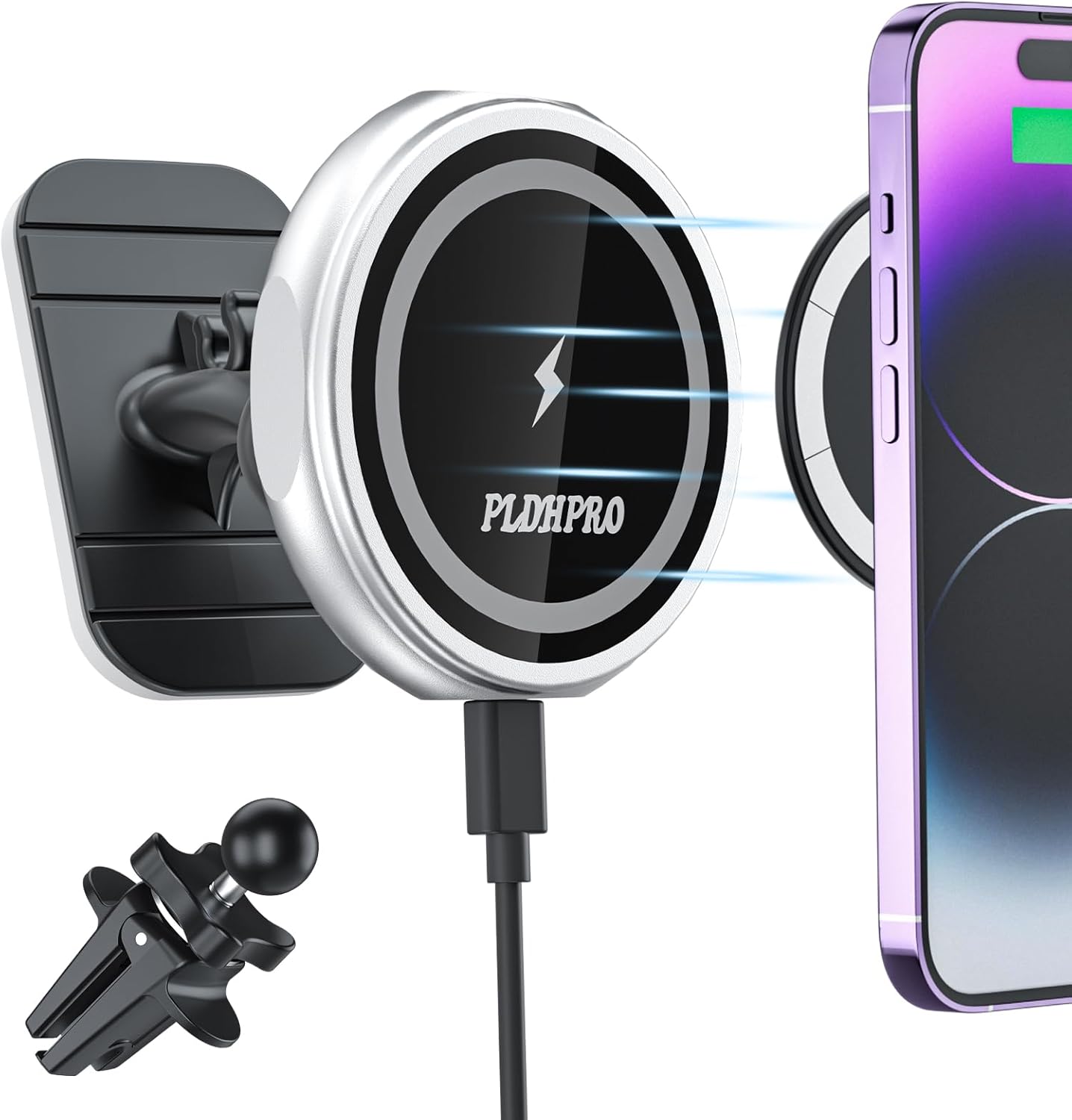 Magsafe car charger is designed for iPhone 13,13 Pro, 13 Pro Max,13 Mini,iPhone 12, iPhone 12 Pro, iPhone 12 mini, iPhone 12 Pro Max, Magnetic Case.It can hold the iphone 13/ iphone 12 directly.This magnetic cell phone charger for car also works for Original Official MagSafe case,