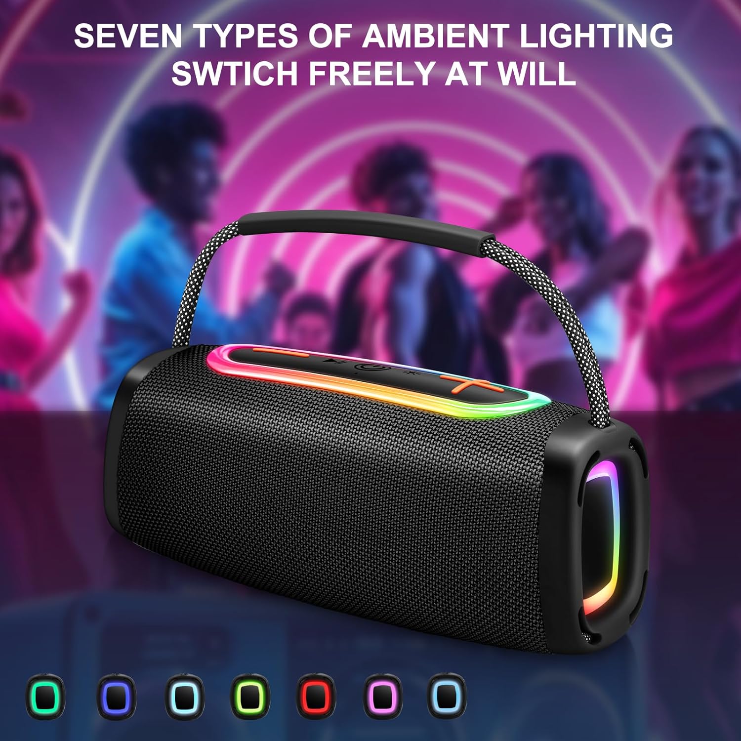 Cool Lights Sync with The Beat: Bluetooth Speaker is designed with multiple dynamic light modes, and Colorful LED lights can change the lighting effect according to the rhythm of music, which colourful and vibrant can give your home party, beach, camping or outdoor travel an exciting atmospher. You can easily turn on and off the LED lights with one button. The ideal gift of choice for junior, relatives, friends and lovers on holidays.