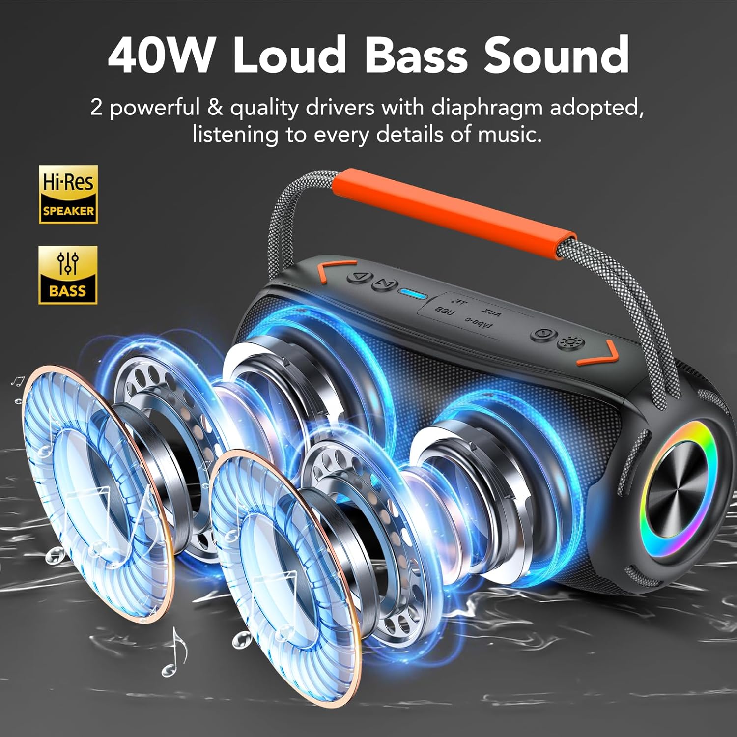 Portable Bluetooth Speaker with Handle, 40W Powerful Stereo …