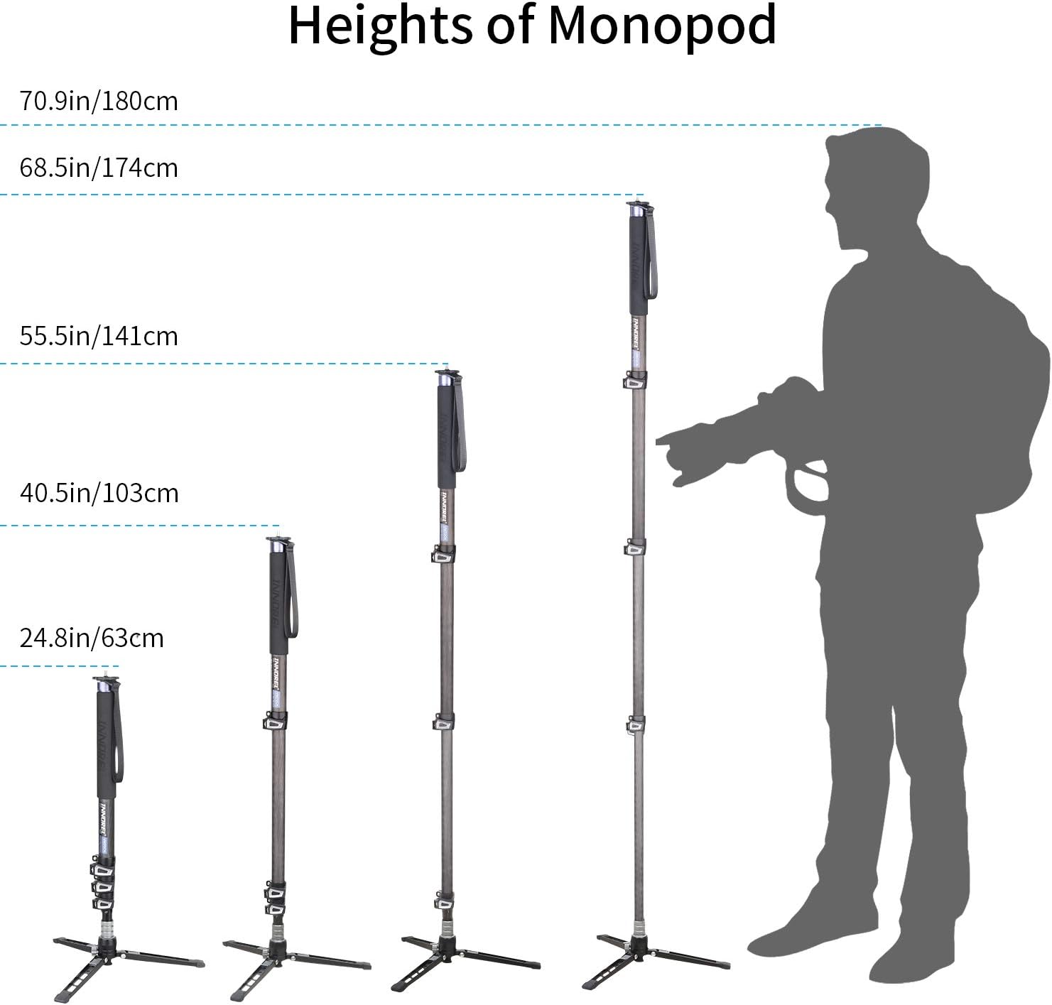 【COMPACT & PORTABLE】–The video carbon fiber monopod kit is lighter and has a larger load, the weight is only 0.96kg and max load is 10kg. It is perfect for sporting events, travel and outdoor shooting.