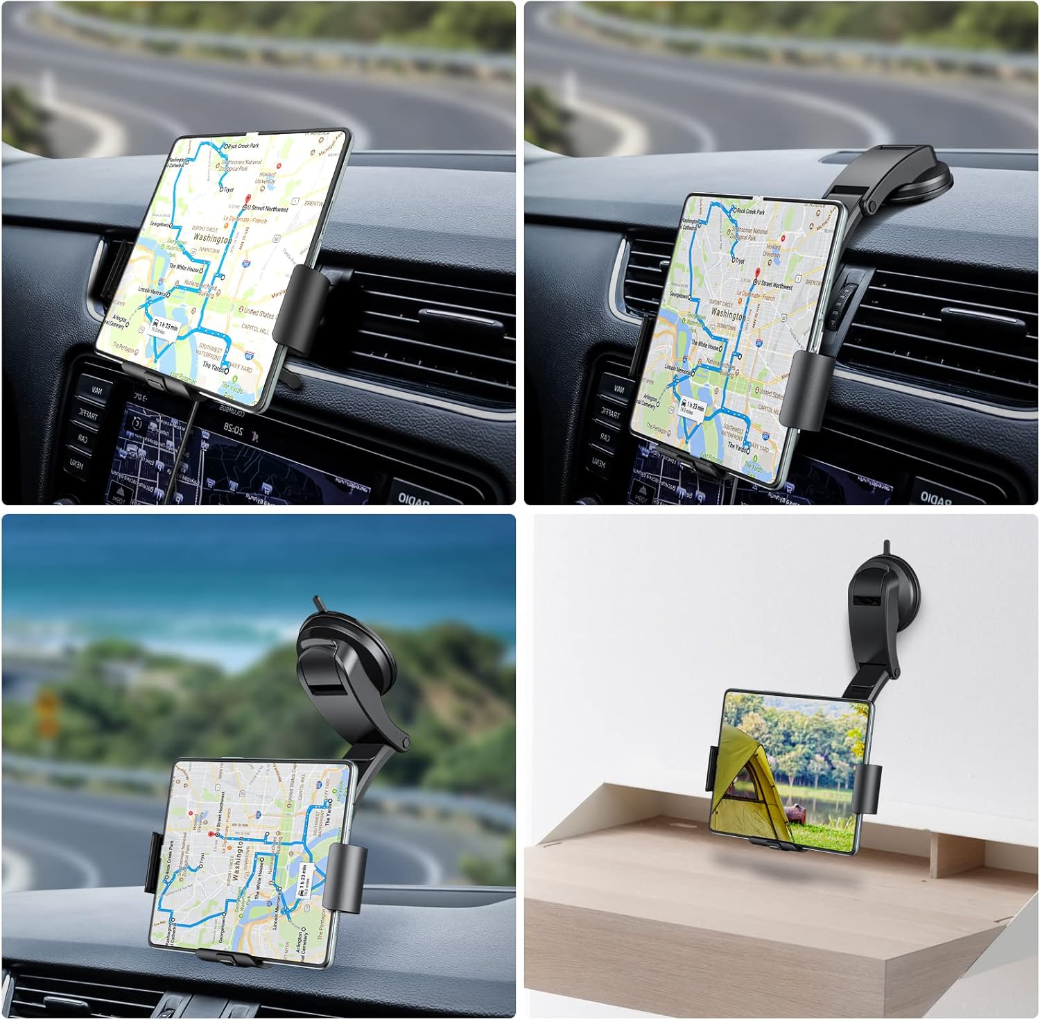 It can be installed on the windshield, dashboard, securely with the strong suction cup, offers fast and safety charging while driving. The bottom is washable suction cup. Rinsing and air drying the suction cup after using for a long time can restore stickiness.