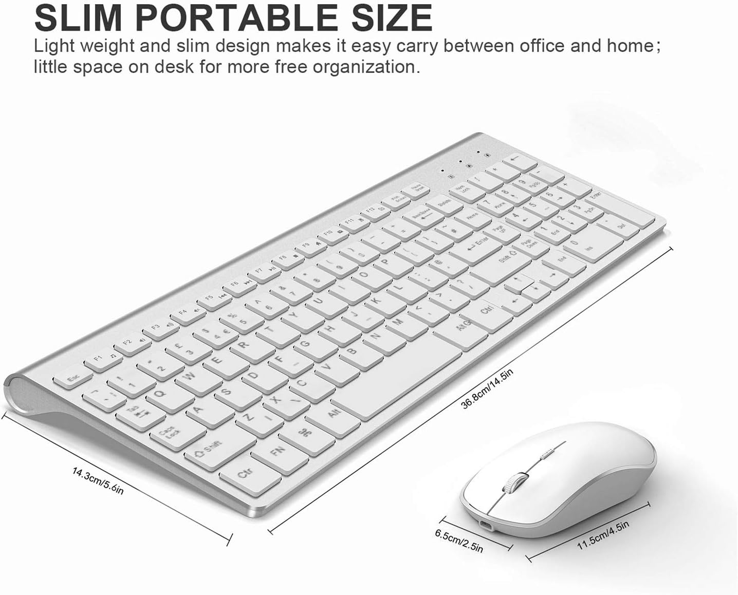 【WHISPER-QUIET & HIGH PRECISION MOUSE DPI2400】The low profile keys allows less noisy compared to conventional keyboard, and the buttons of mouse are silent,which let you concentrat on work and avoid disturbing other surrounding,great for home and office! Choose sensitivity with 5 adjustable DPI levels mouse (1000-1200-1600-2000-2400) on your activity.