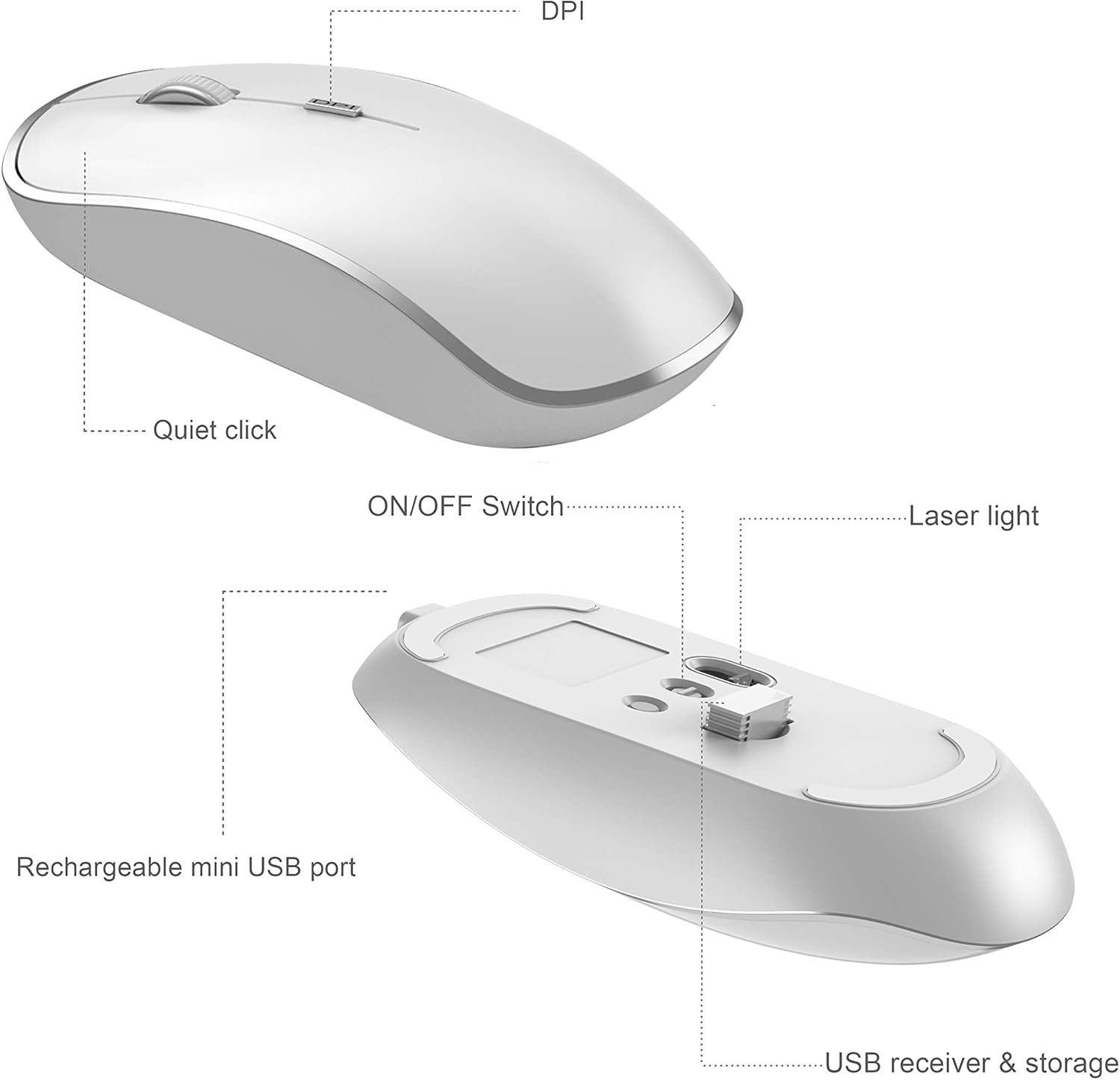 【ELEGENT & STYLISH DESIGN】The wireless keyboard is finished by luxury silver on the front surface combined with the high-end ABS underneath, the wireless mouse is pearl white smooth surface treatment combined the silver finished brim,perfect matching set gives you a sensor of gorgeous and morden!