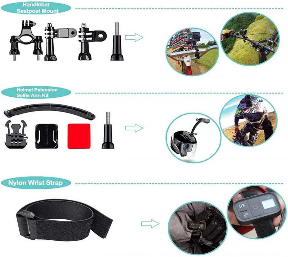 🔥[Wide Device Compatibility:] This accessory kit works seamlessly with a wide range of action cameras, including GoPro Hero 13, Hero 12, Hero 11 Mini, Hero 11, Hero 10, Hero 9, Hero 8, Max, DJI Osmo Action 4, 3, 2, Insta360 X3, X2, ONE RS, GO 2, GO 3, AKASO, APEMAN, Campark, SJCAM, and more. No matter what device you have, this kit has you covered.