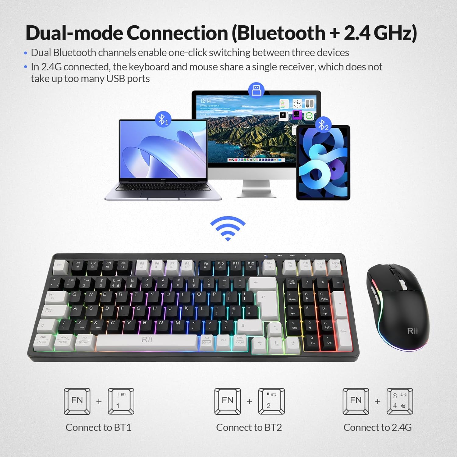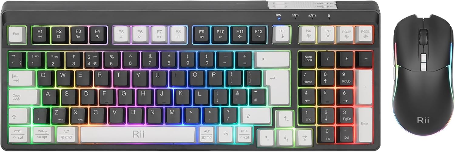 Rii RK301 2.4G+Bluetooth Wireless Keyboard and Mouse Set wit…