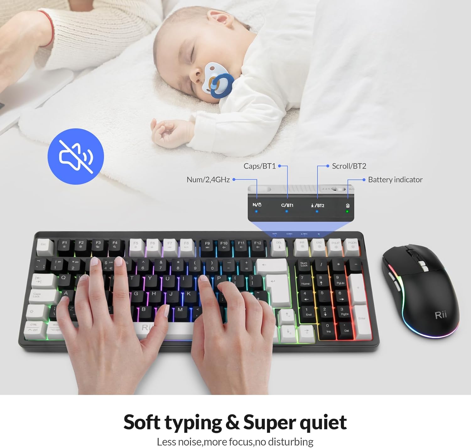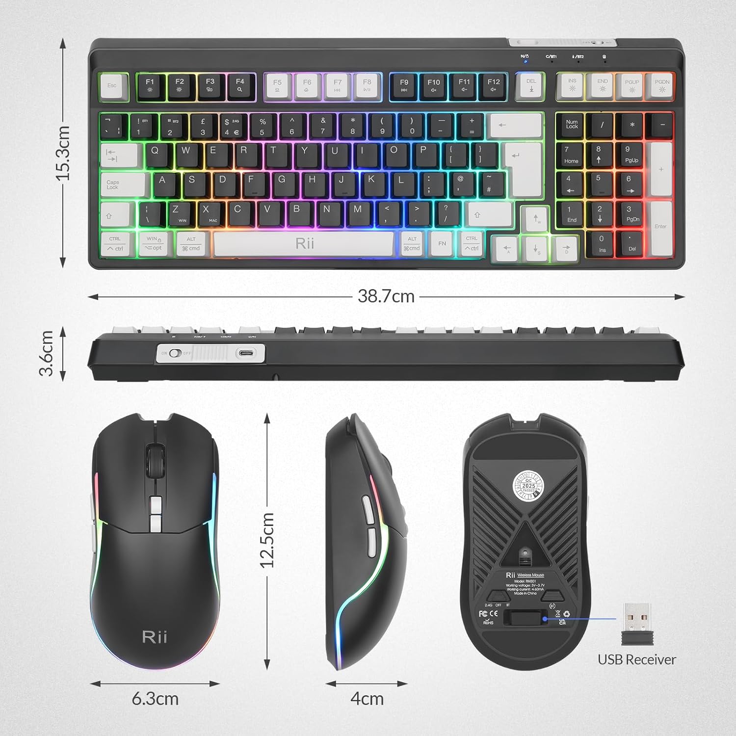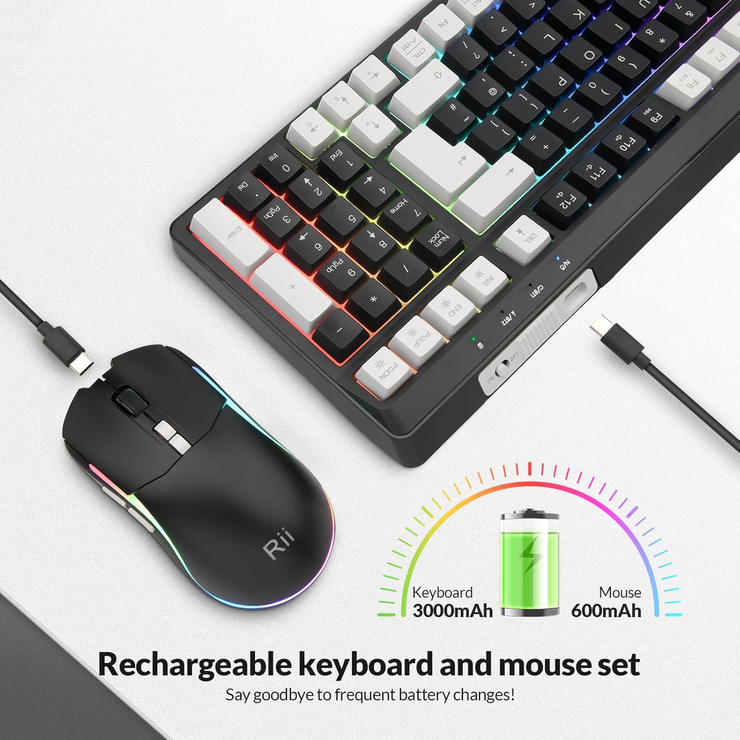 【Rechargeable Convenience】 The Rii RK301 Bluetooth Keyboard and Mouse Set features a rechargeable design, eliminating the need for frequent battery replacement and ensuring that your keyboard and mouse are always ready for use.