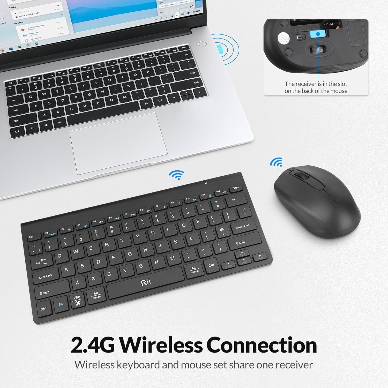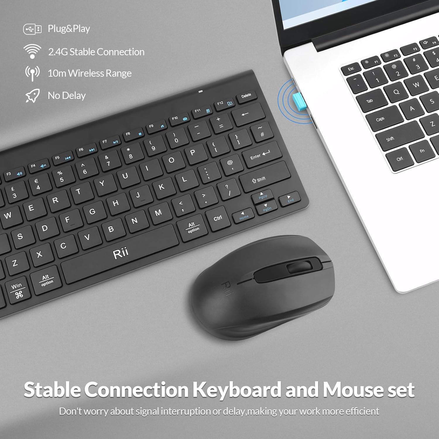 Enjoy a stable 2.4G wireless connection between the keyboard and mouse, utilizing a shared USB receiver