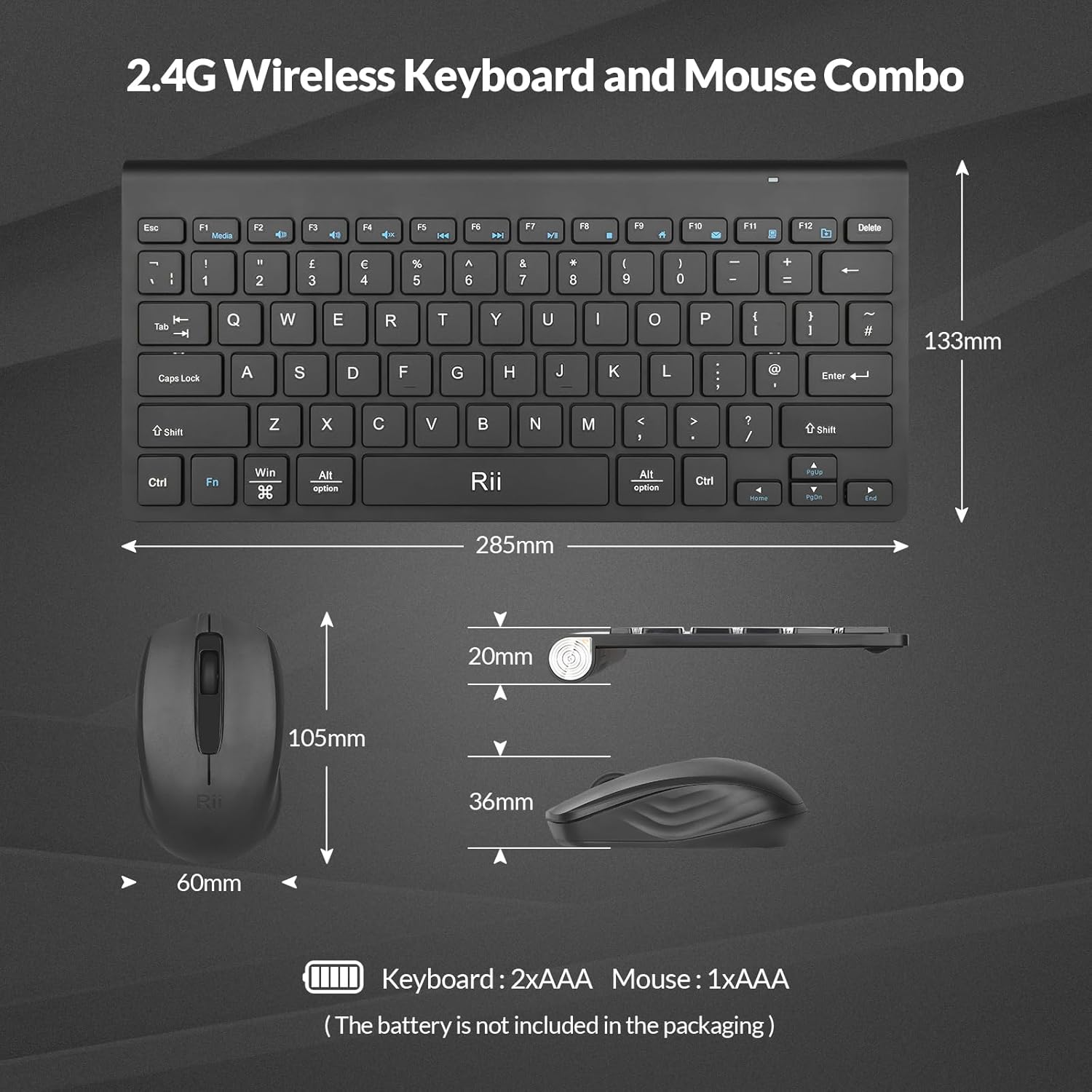 【Broad Compatibility】Battery-Powered and Versatile: Compatible with Windows, Mac, Linux, and more, this wireless keyboard and mouse set works across various devices. With easy-to-replace batteries, you’ll enjoy uninterrupted use. (Note: The keyboard requires 2 AAA batteries, and the mouse requires 1 AA battery, not included in the package.)