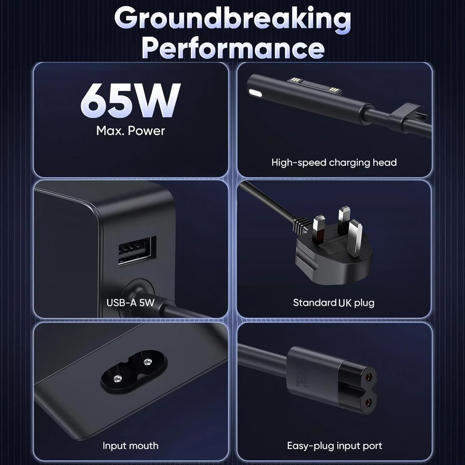 【 Wide compatibility 】: SCOVEE 65W Surface Pro charger is compatible Microsoft Surface Pro 10, 9, 8, 7+, 7, 6, 5, 4, 3, X, Windows Surface laptops 6, 5, 4, 3, 2, 1, Studio, and Surface Boo k3,2,1,Surface Go 3, 2,1 and above! . By using the 5V 1A USB charging port, you can charge your phone or other devices simultaneously. (★ Not compatible with 15V 6.33A 102W laptop)