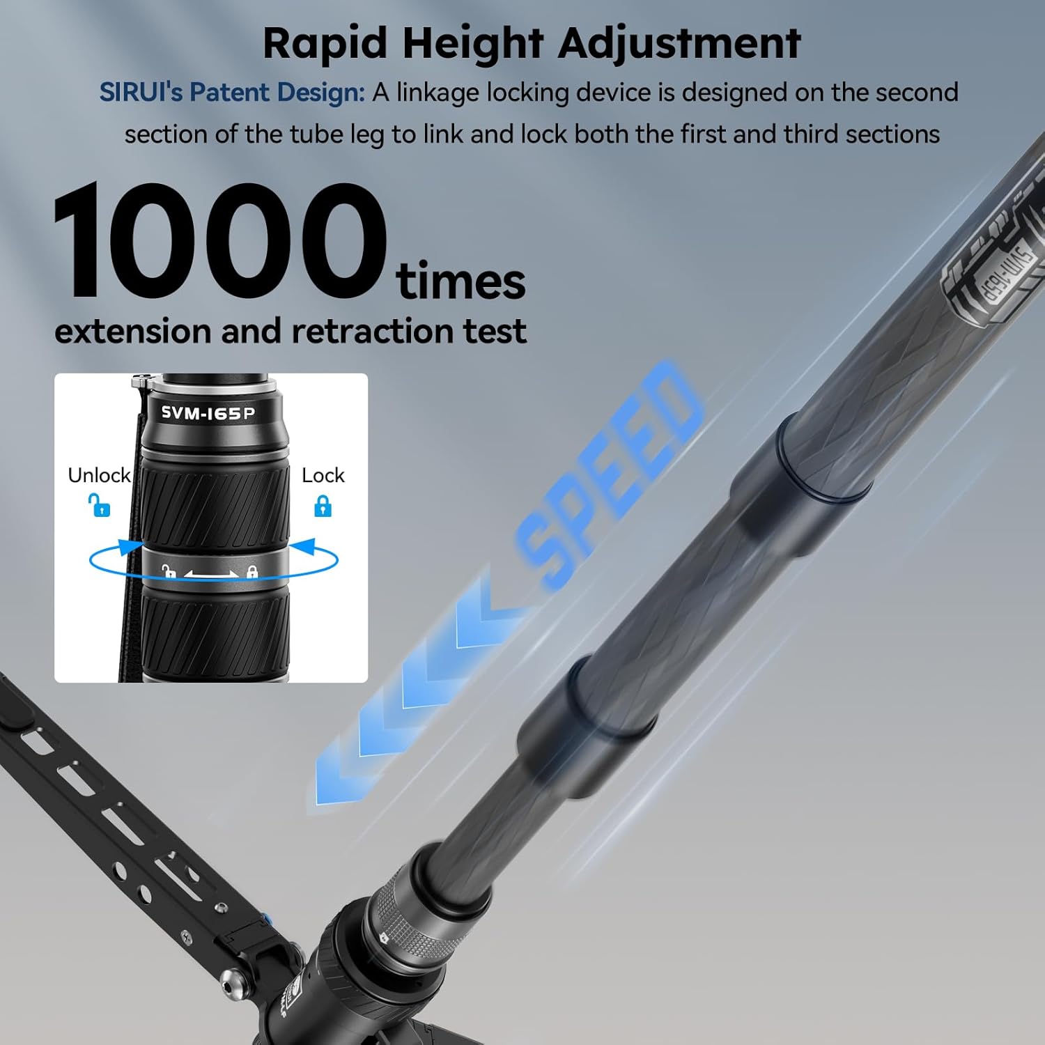 Lightweight & Compact Carbon Fiber Monopod: SVM-165P monopod with 36mm max tube, weighs only 3.4lbs/1.52kg and load up to 22lbs/ 10kg, which is ideal for active shooting where you can move it easily to capture images at the appropriate angle.