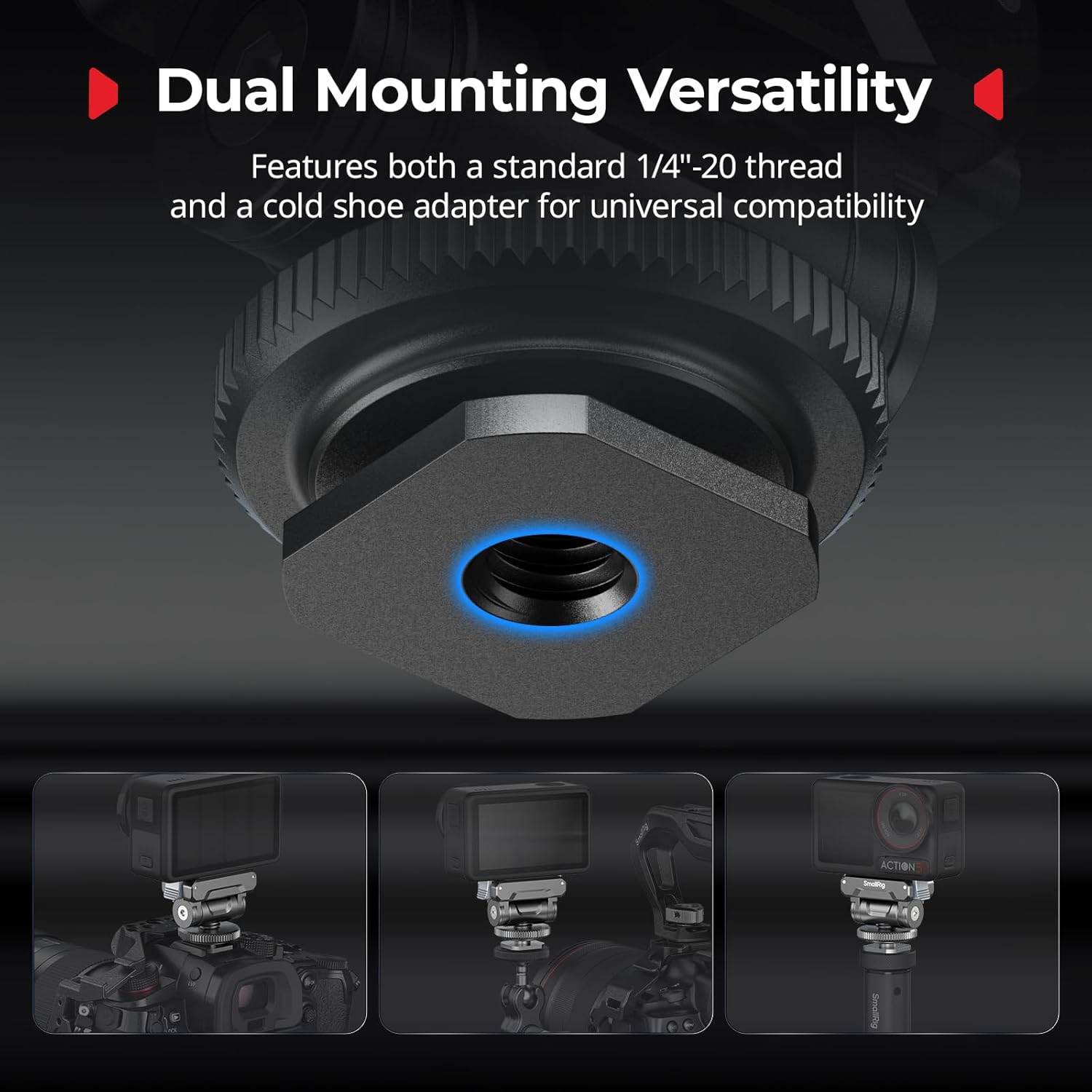 Dual Mounting Versatility (1/4″-20 & Cold Shoe): Features both a standard 1/4″-20 thread and a cold shoe adapter for universal compatibility. Mounts effortlessly to magic arms (ID 3238B), selfie sticks (ID 5403), cages (ID 5587), tripods, and more.