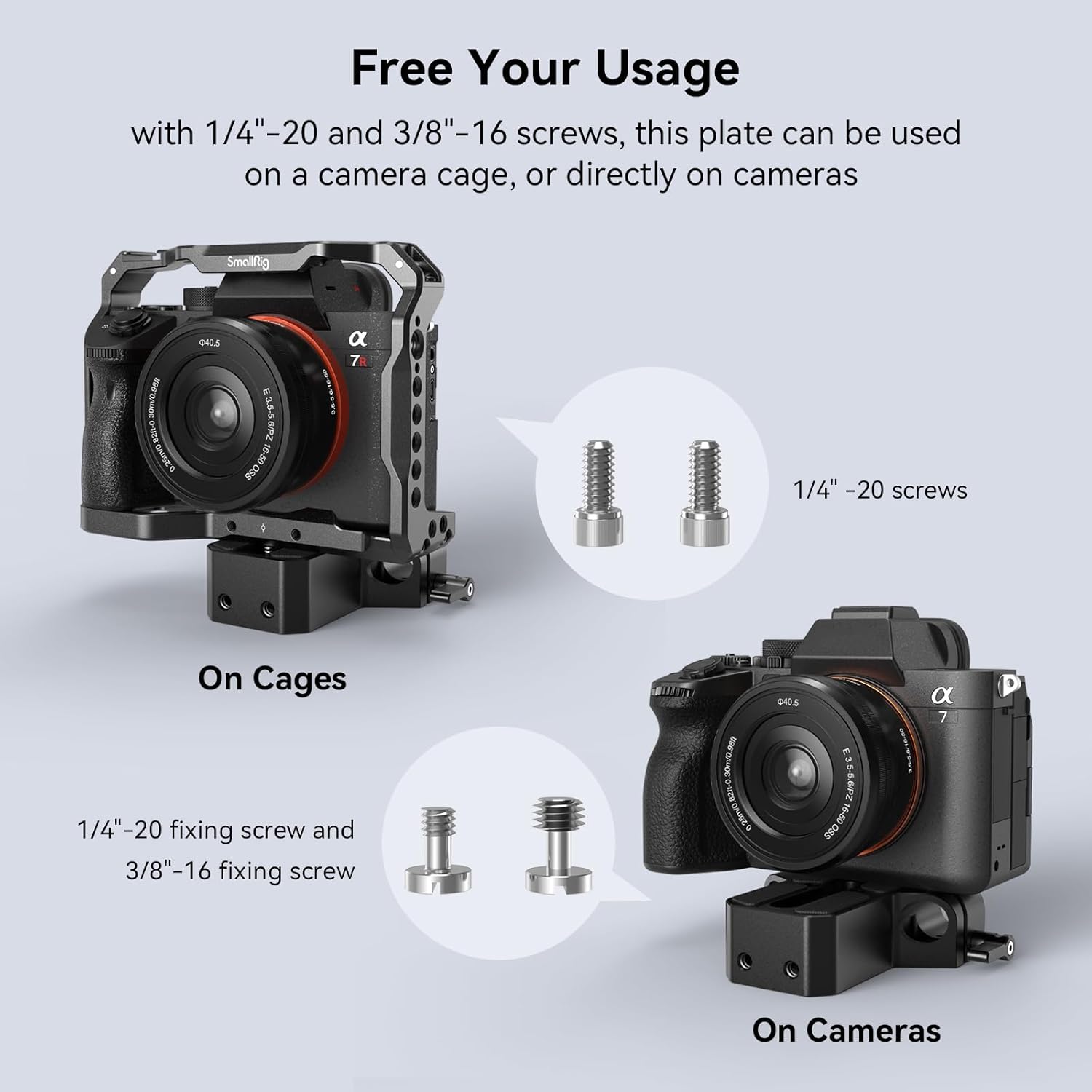 【UNIVERSAL USAGE】This SmallRig Baseplate 1674 is a simple and light base plate for the most popular cameras, such as for Sony a6500 a6600 a6300 a6400 a6000, Sony A7 series, for Panasonic GH5 GH6, for Canon R5 R6 R7 R10, for BMPCC 4K 6K Pro etc. It attaches to a camera with a 3/8″ or 1/4″ screw.