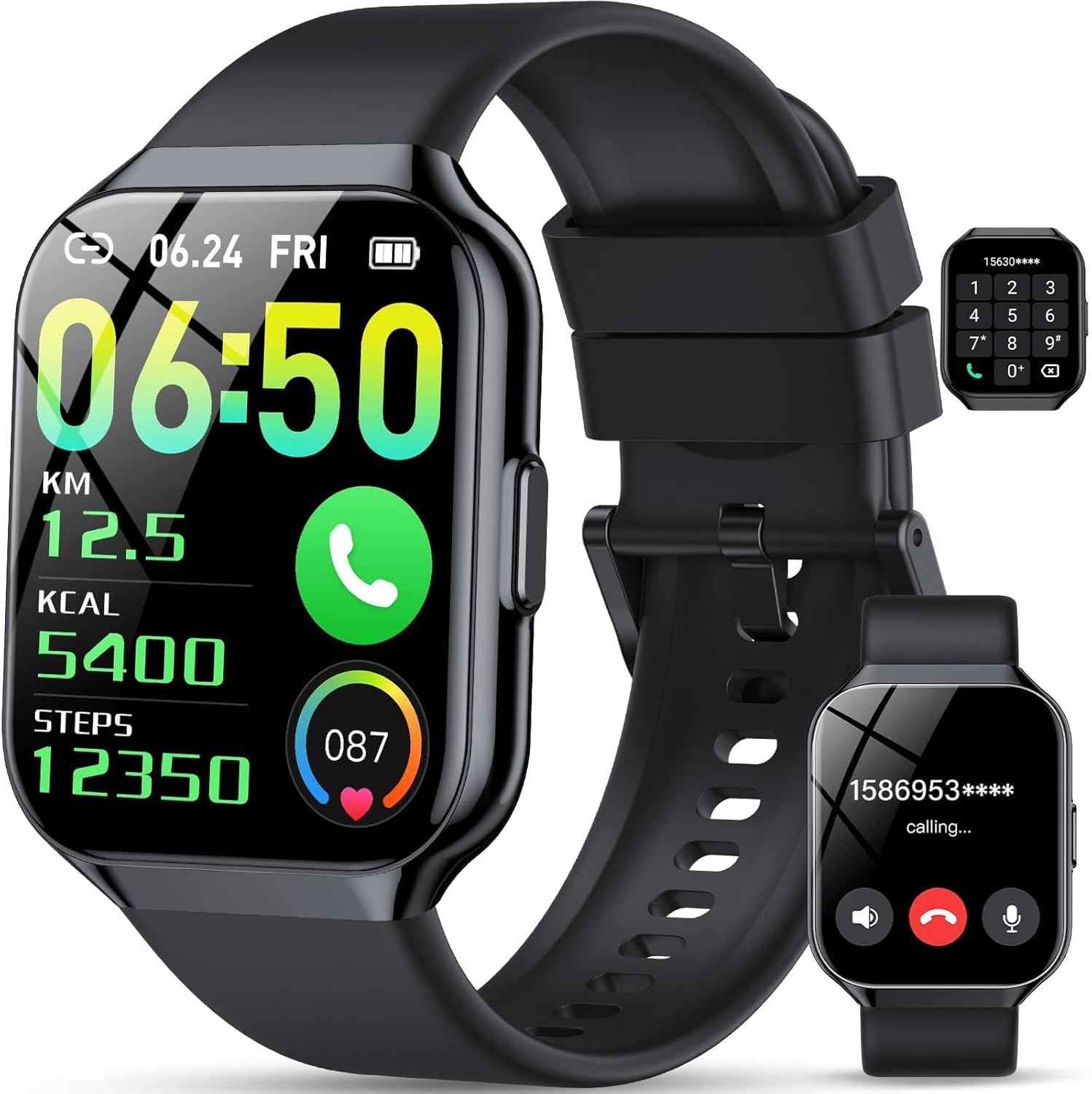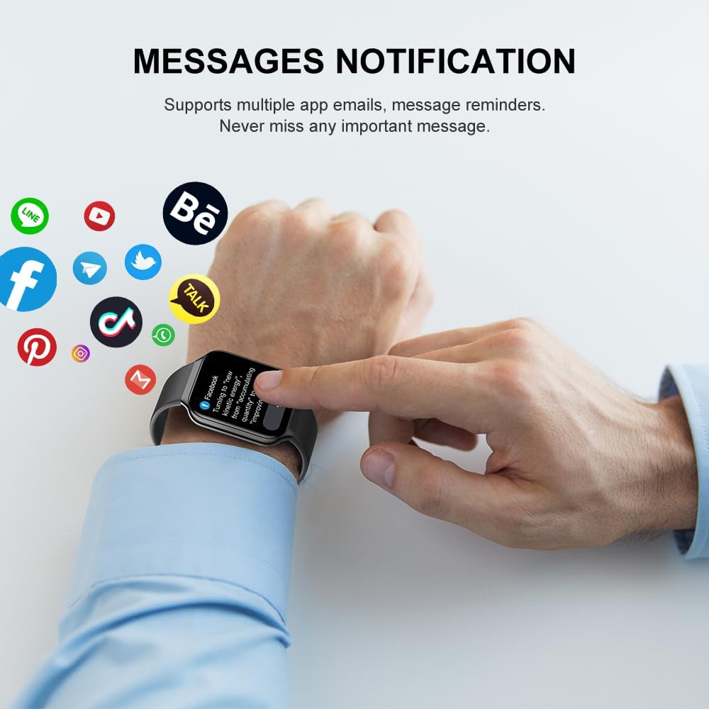 Bluetooth Call and SMS Notification Function: make/receive calls without taking out your mobile phone. With a built-in microphone and speaker, the smartwatch can easily receive and make calls via Bluetooth, play music calls from your mobile phone and support AI voice assistants, in addition to traditional notification functions (messages from Facebook, WhatsApp, Instagram, etc.). Whether you’re in a busy work environment or out and about, you can always stay in touch with family and friends.