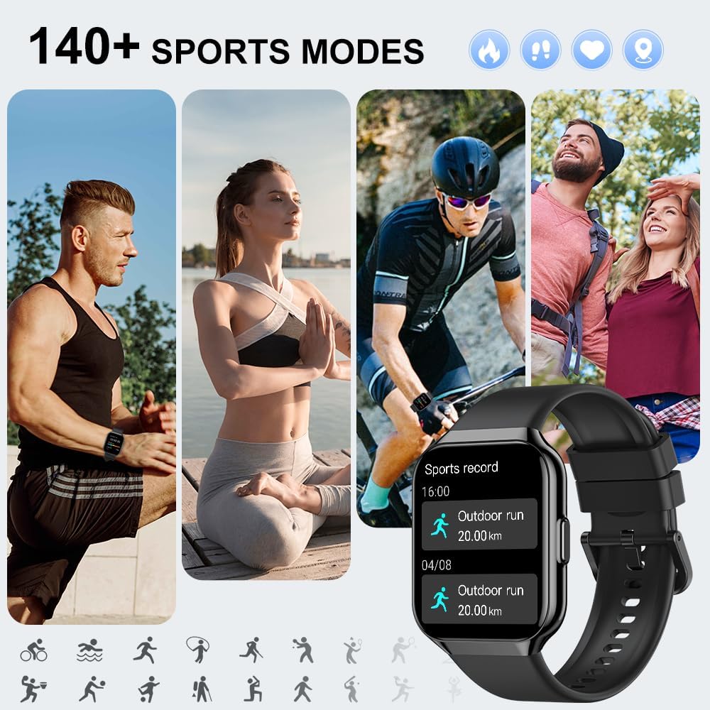 140+ SPORTS MODES AND IP68 WATERPROOF: Fitness watch for men and women supports more than 100 sports modes (running, dancing, yoga, cycling, hiking, etc.), the watch comes with a pedometer to track your steps, calories, distance, time, training exercises and routes in your daily life, and real-time data tracking to help you adjust the intensity of your training to achieve the best training results. Fitness sports watch with IP68 waterproof function can meet your daily waterproof needs.