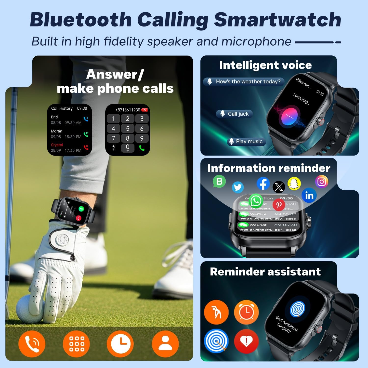 2.01″ HD Touch Screen/100+ Dials: This fitness tracker smartwatch for men women features a large 2.01-inch display. Important notifications such as incoming calls, reminders and fitness data can all be clearly displayed. It features screen brightness adjustment and screen-on time regulation to ensure an optimal viewing experience and maximum battery life. This smart watch also features over 100 built-in watch faces in various styles, including 3D dynamic dials, and supports DIY watch faces.