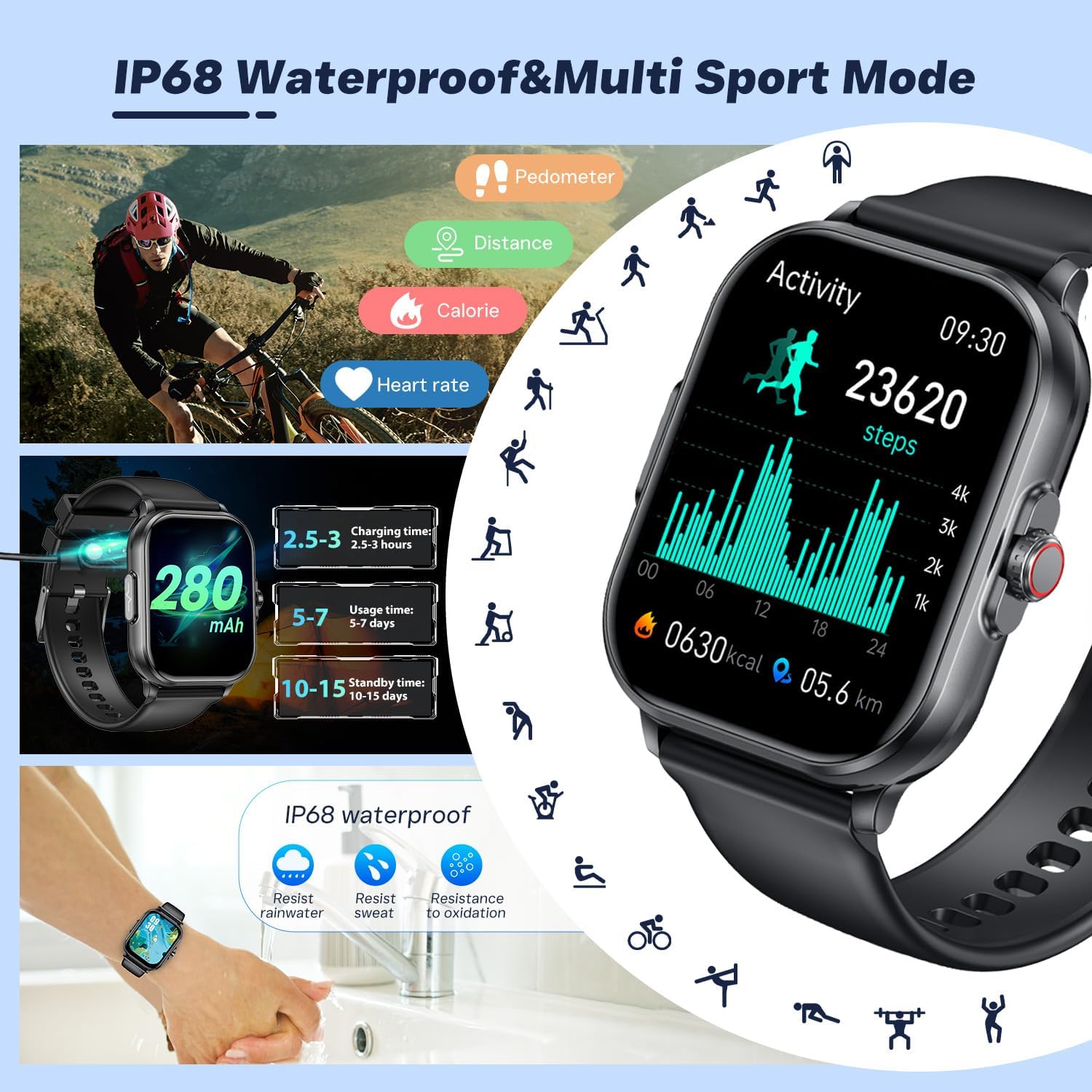 Multiple Sports Modes/IP68 Waterproof: Fitness tracker smartwatch for men women supports multiple sports modes including Running, cycling, swimming, skipping, basketball, football, badminton, etc. The display will show step count, exercise duration, GPS activity track, calories, distance and other relevant data, helping you train scientifically and achieve optimal results. The IP68 waterproof rating means you needn’t worry about damaging your smart watch in the rain or while washing your hands.