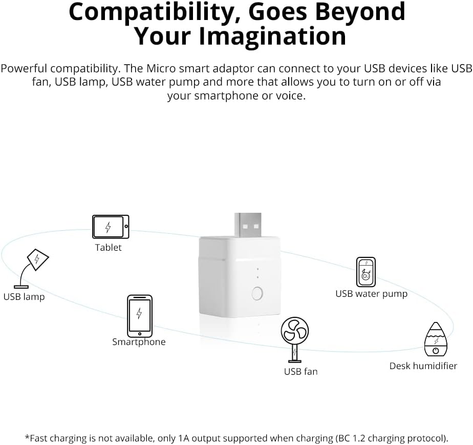 【Plug And Play, Smart In Seconds】SONOFF Micro USB smart adaptor makes your ordinary USB devices smart. The eWeLink APP enables you to control all SONOFF devices anywhere with one tap via iOS & Android smartphones, with no distance limitation.